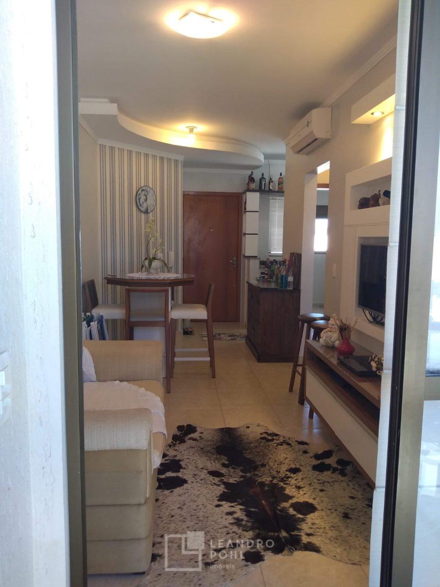 Apartamento de 01 dormitório, com sacada fechada, churrasqueira, permanecem todos os móveis sob medida, sendo na sala, cozinha, banheiro e dormitório, não tem box de estacionamento;