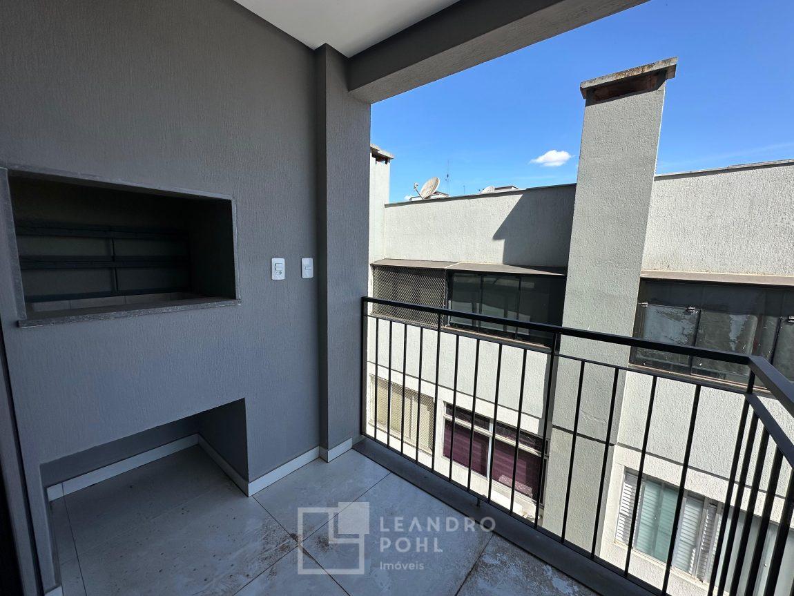 Apartamento novo de 1 dormitório, 1 box de estacionamento, sacada com churrasqueira de fundos, esperas para split e água quente, elevador, localizado no Bairro Americano em Lajeado.