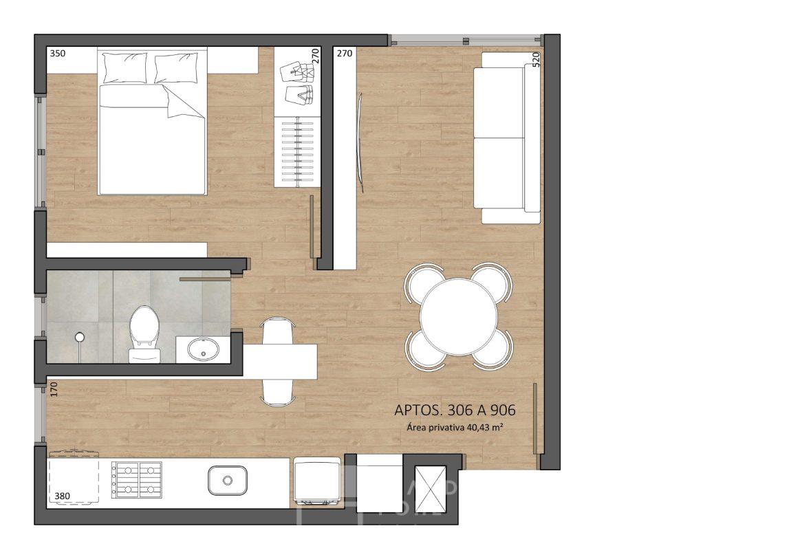• Apartamentos com 1 dormitório