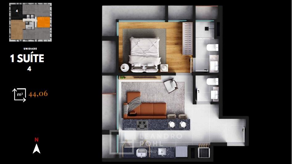 Apartamento 1 súite + lavabo, cozinha e sala integrados, piso porcelanato, janelas amplas, gás central, água individual, piscina com deck, academia, lavanderia, espaços gourmet, Yü office, Yu Market e espaços gourmet/salão de festas), no meio da torre haverá espaço de convivência com uma jabuticabeira e no Rooftop um lindo espaço para contemplar a vista.