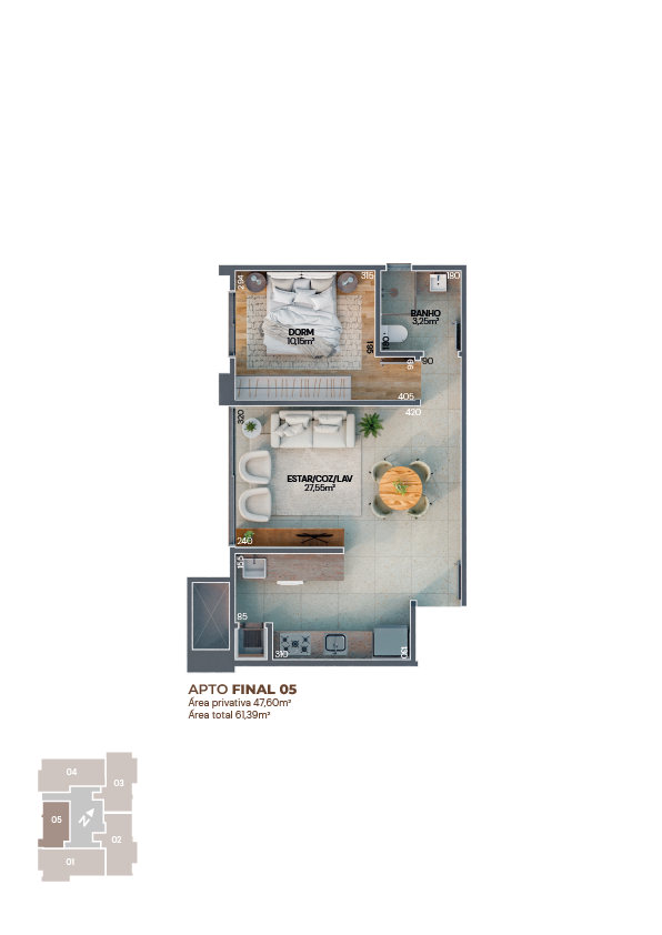 • Opção de 1 dormitório, 2 dormitórios, 2 dormitórios com 1 suíte e coberturas planas de 3 suítes.