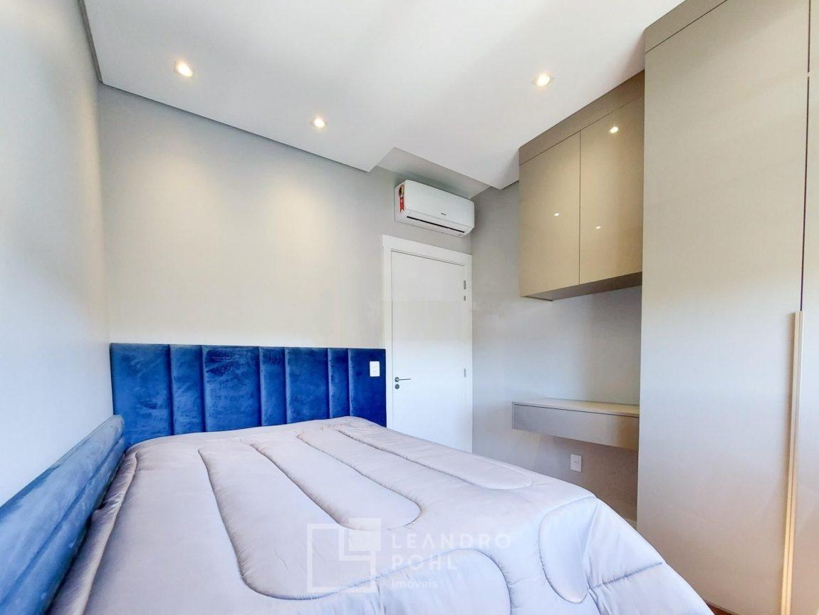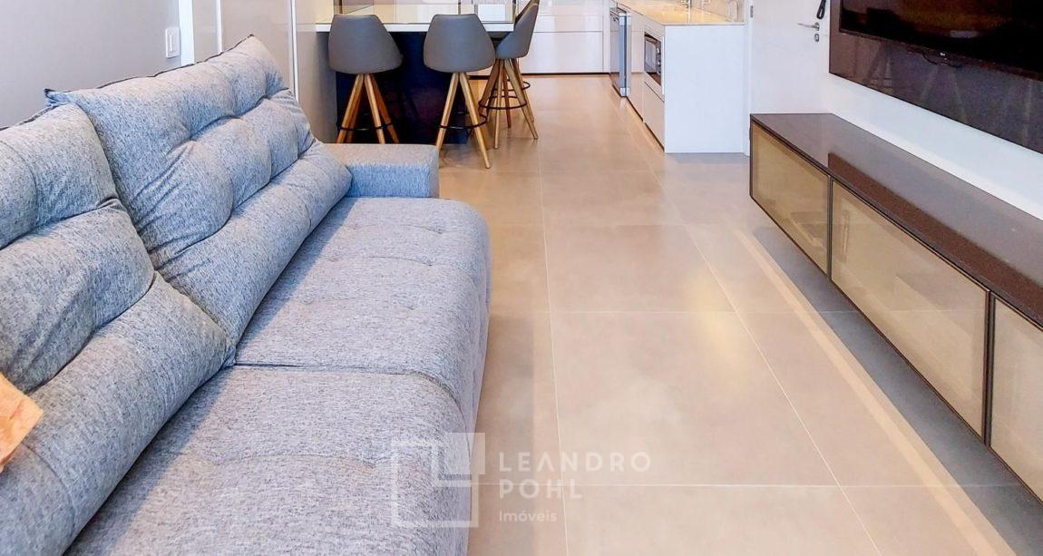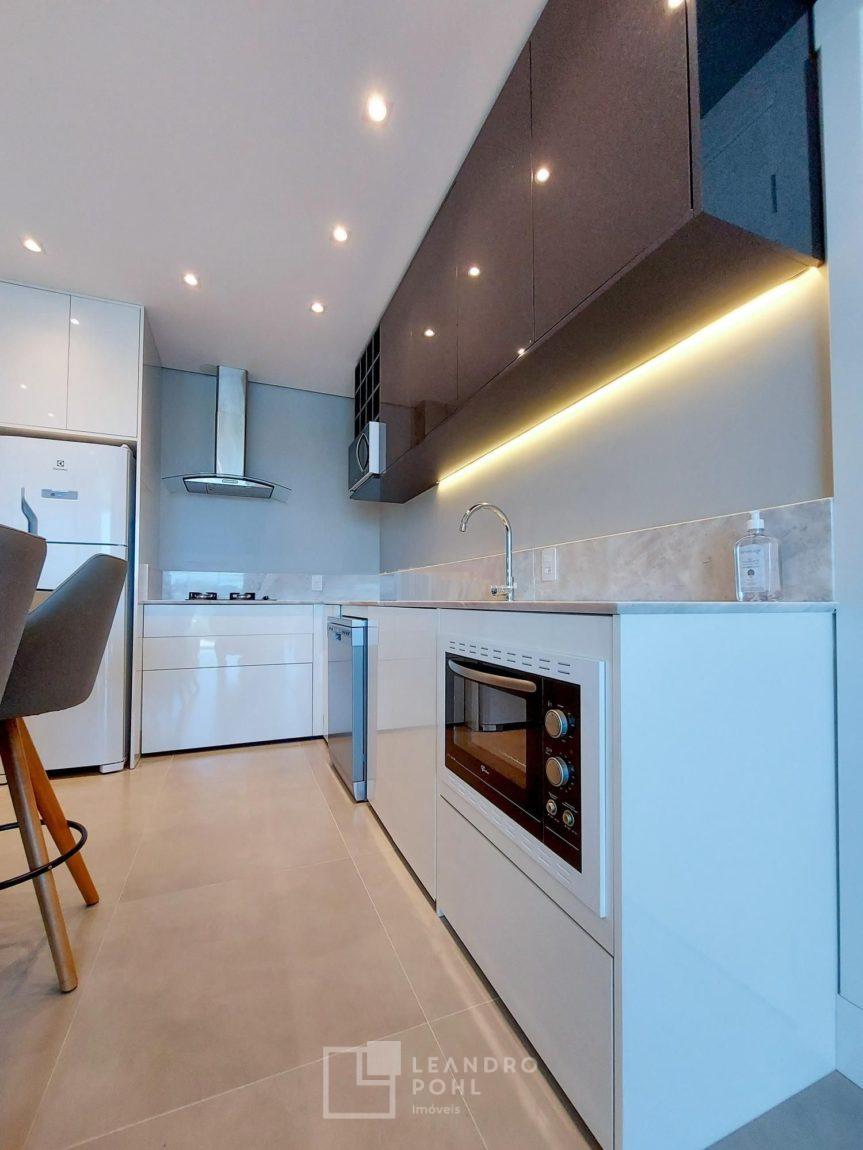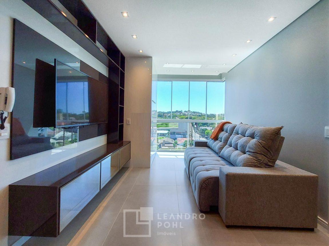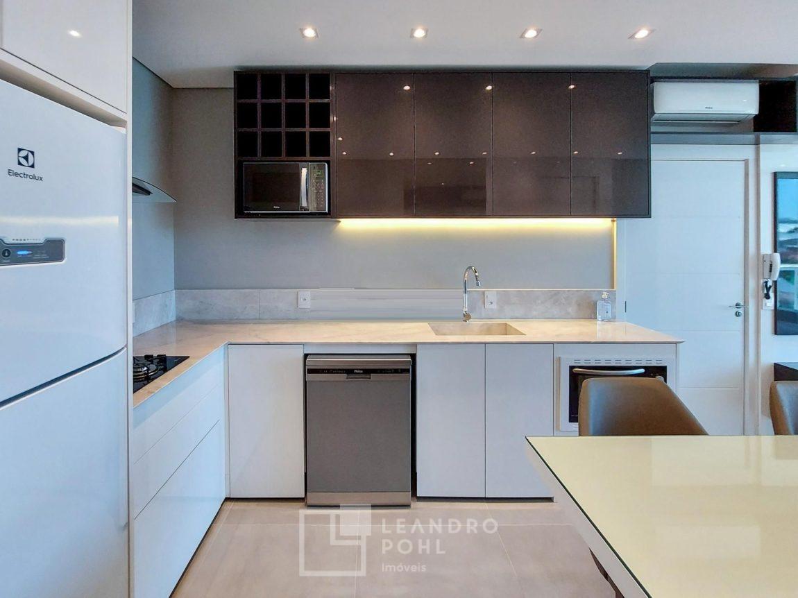 Apartamento novo 2 dormitórios, suíte, pronto para morar, de frente, sacada integrada, mobiliado, piso porcelanato, andar alto, prédio com elevador, gás central, agua individual, espera para split, hall de entrada mobiliado e decorado, box de estacionamento.