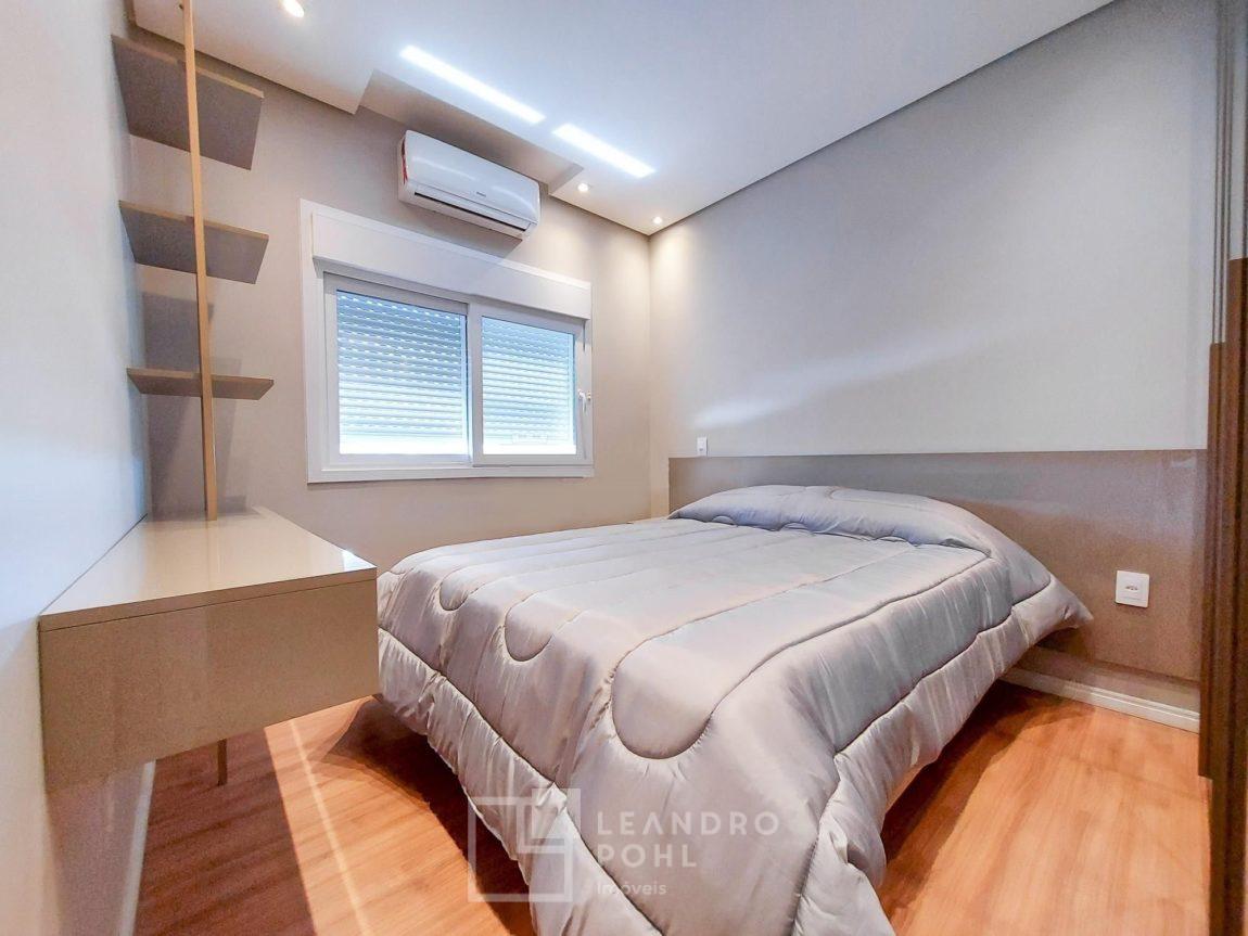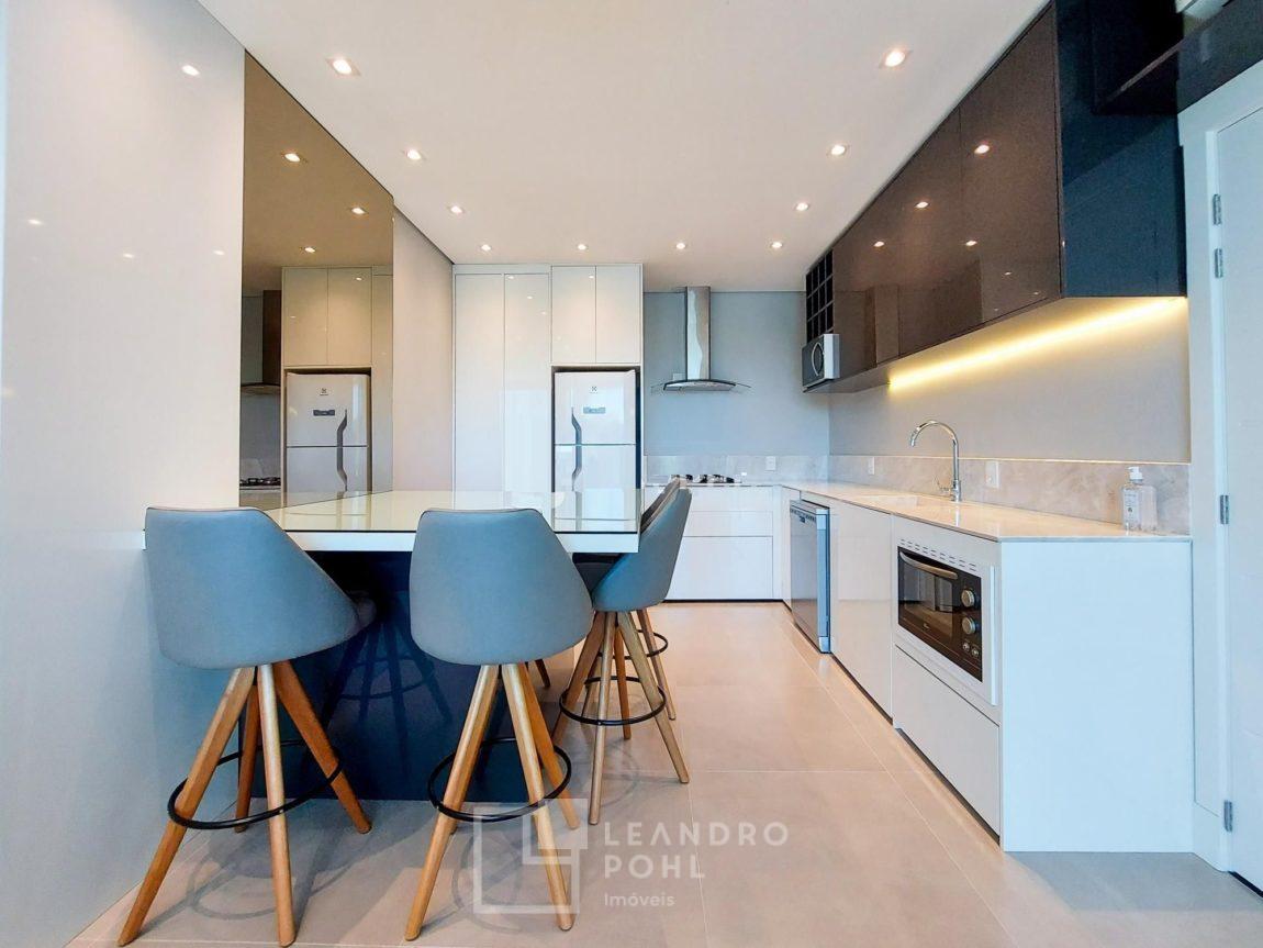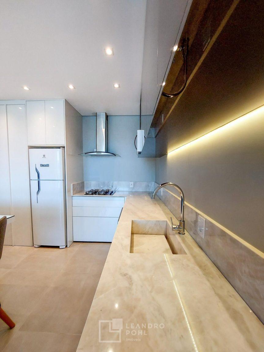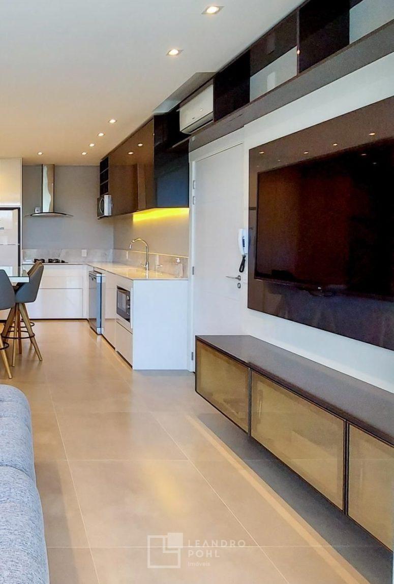 Apartamento novo 2 dormitórios, suíte, pronto para morar, de frente, sacada integrada, mobiliado, piso porcelanato, andar alto, prédio com elevador, gás central, agua individual, espera para split, hall de entrada mobiliado e decorado, box de estacionamento.