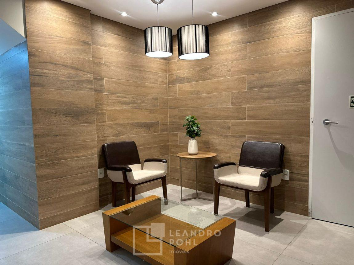 Com hall de entrada e salão de festas mobiliados.
