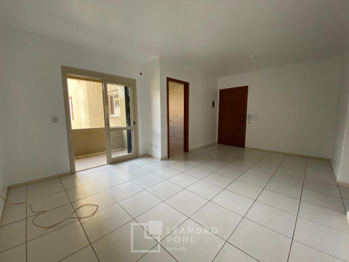 Apartamento 2 dormitórios, sala, cozinha, sacada de frente/recuada, piso cerâmico, churrasquira, box de estacionamento.