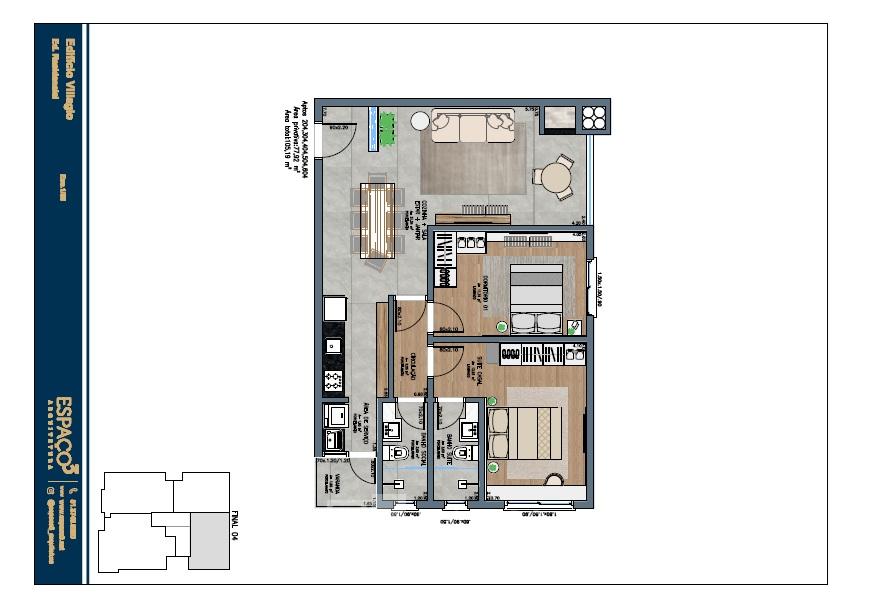 Edifício com acabamentos em excelente padrão, hall de entrada mobiliado, salão de festas, academia, paisagismo e espelho d’ água. Conta com apartamentos de 2 e 3 dormitórios com 2 garagens e uma loja térrea, são 6 andares, 4 unidades por andar, e 2 coberturas no ultimo pavimento.