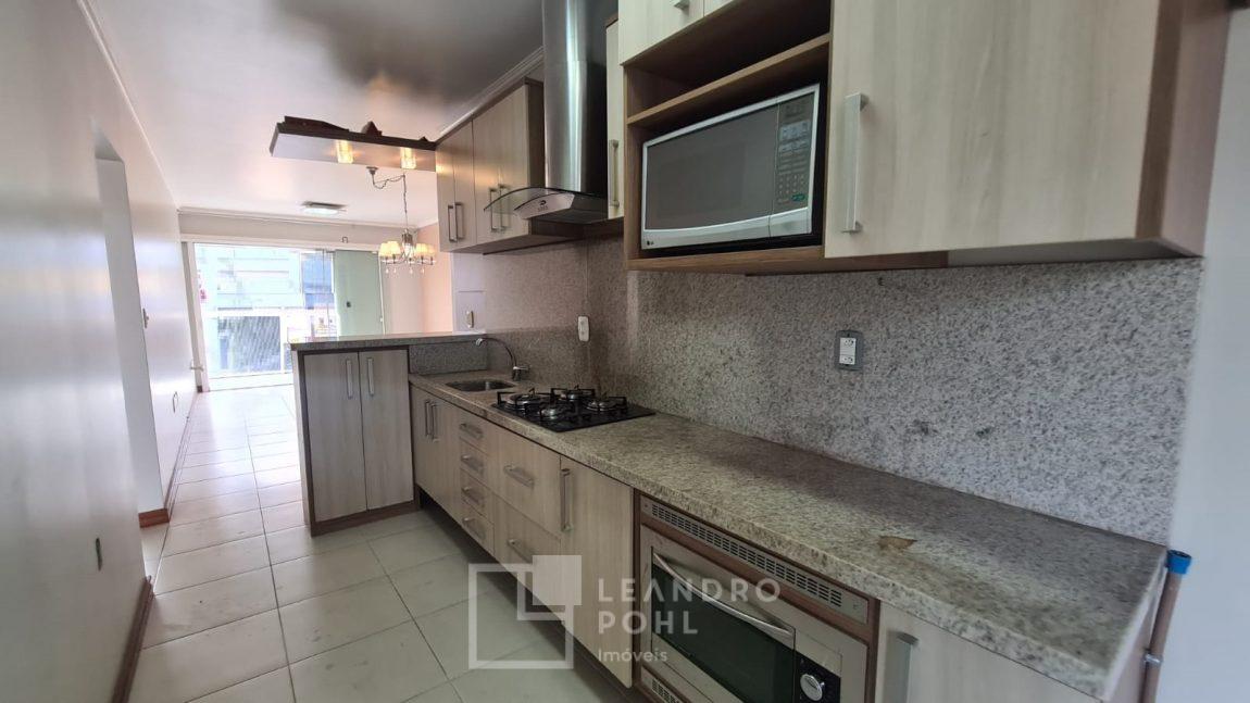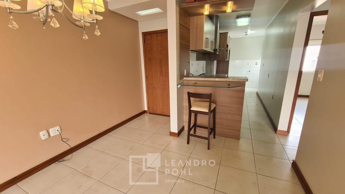Apartamento de frente, 4° andar, semimobiliado com 02 dormitórios, sala de estar, jantar integrada com a cozinha, piso ceramico, área de serviço, banheiro social, sacada com churrasqueira, água individual, gás central, tubulação para água quente, box de estacionamento.