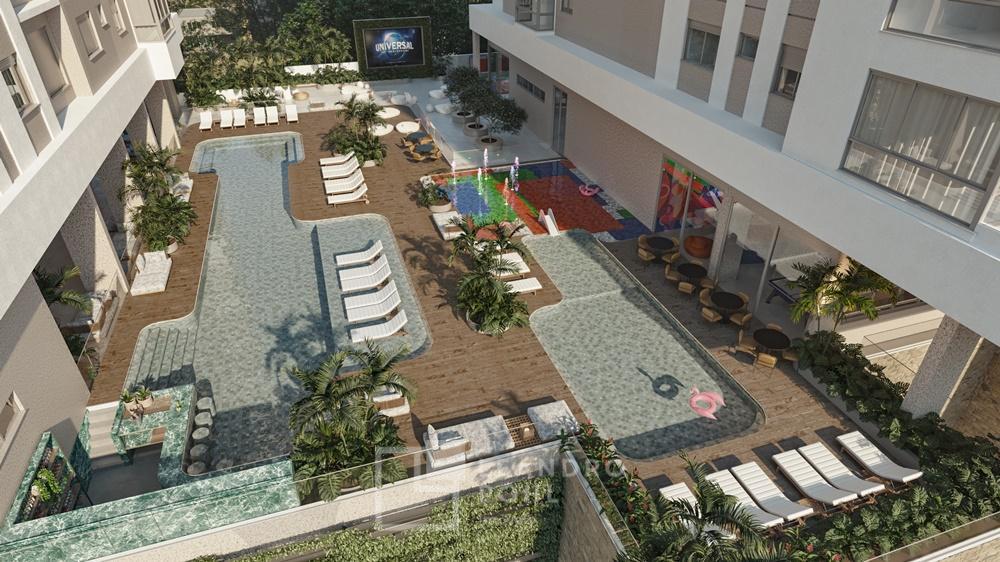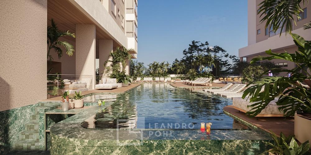 Piscina com prainha e bar molhado,