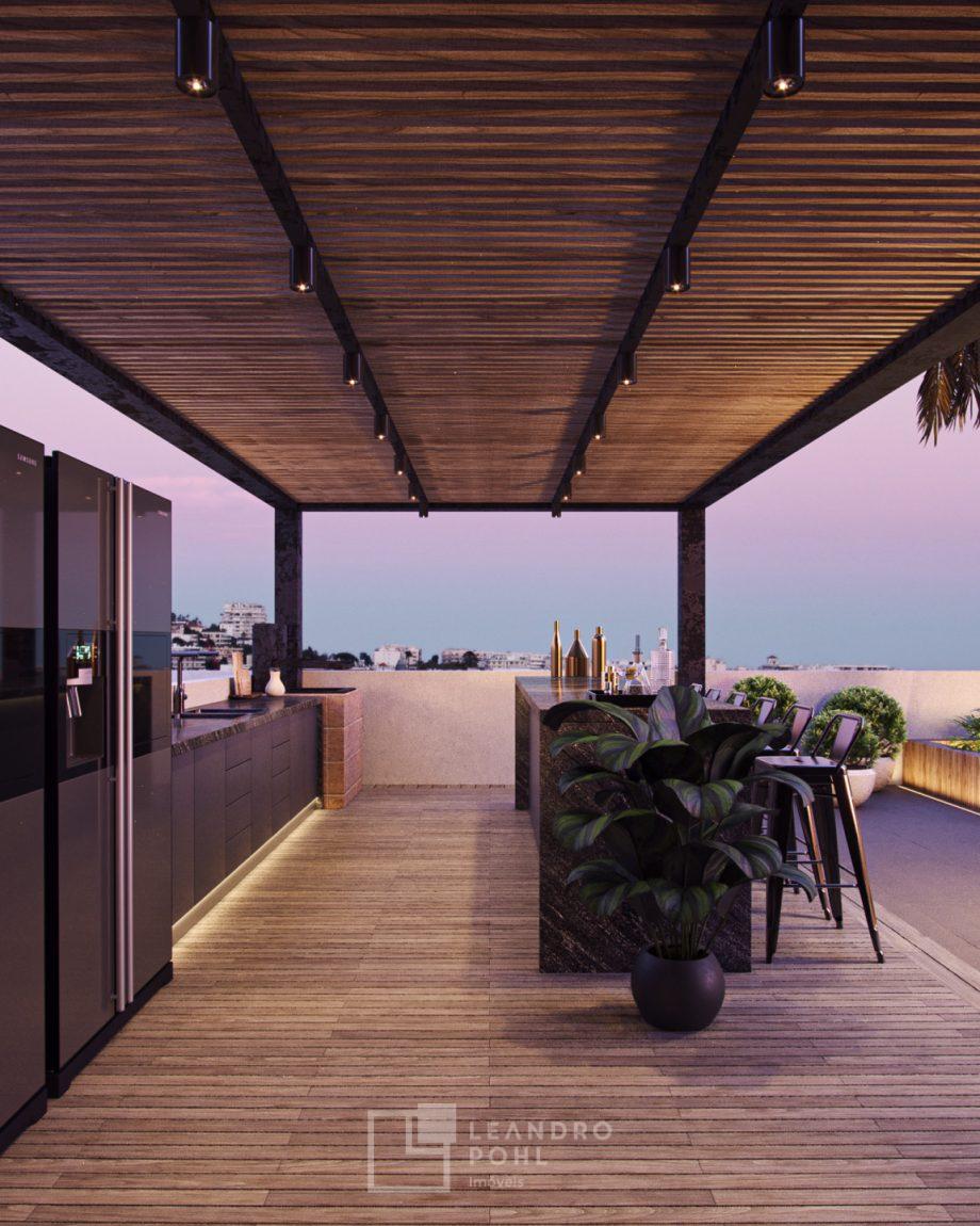 salão de festas com chopeira, mesa de sinuca, eletronicos, redário, coworking, fireplace, e um extraordinário Rooftop, com espaço garden, sofás e paisagismo.