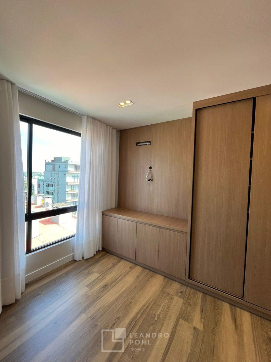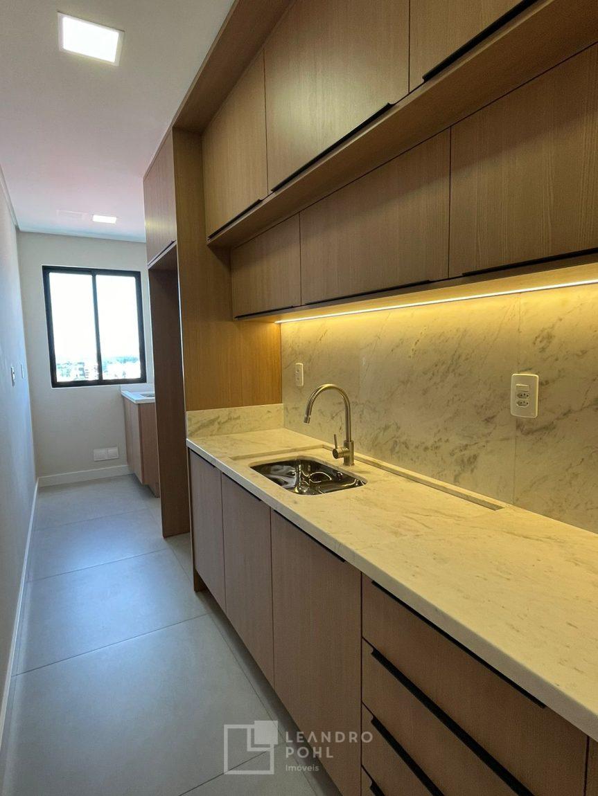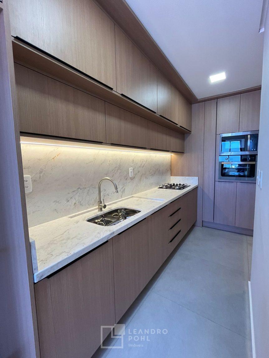 Apartamento no ultimo andar (9°), 2 dormitórios, SEMIMOBILIADO, com luminárias e led, forno e fogão embutidos, sendo uma suíte, sacada com churrasqueira, prédio novo, com elevador, gás central, espera para split, medidor individual de agua.