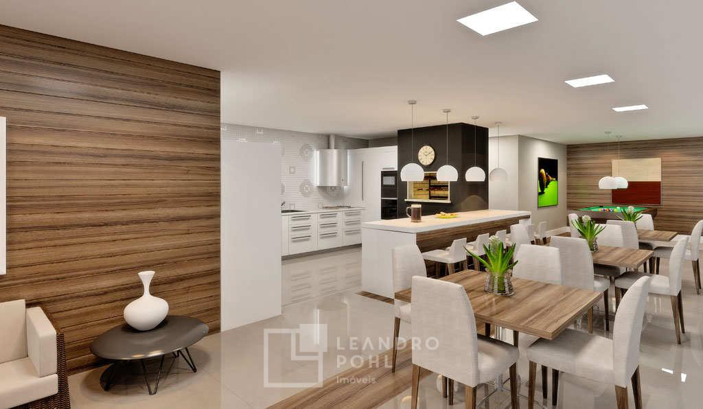 Apartamento 2 dormitórios, suite, sacada com churrasqueira, piso porcelanato, espera para split, gás central, agua individual, móveis projetados na cozinha, forno e micro-ondas embutidos, torneira, cuba e exaustor, junquer, área de serviço separada, banheiros com chuveiros.