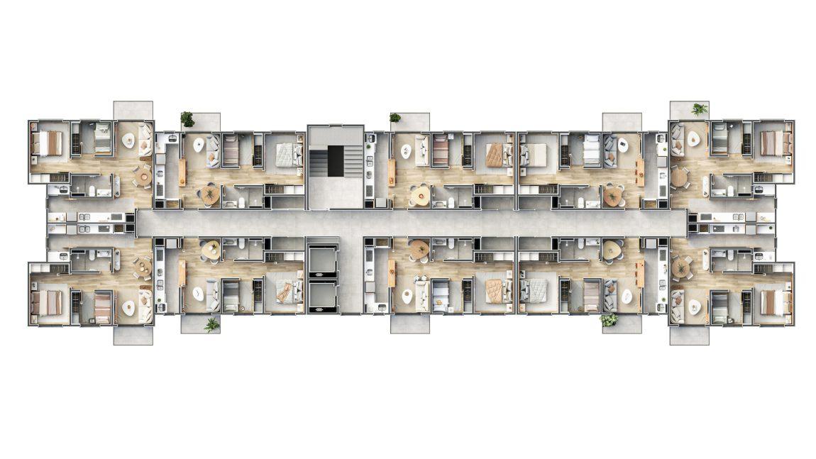 Apartamentos de 2 dormitórios, com e sem sacada, de 50,86m² e 53,90m².