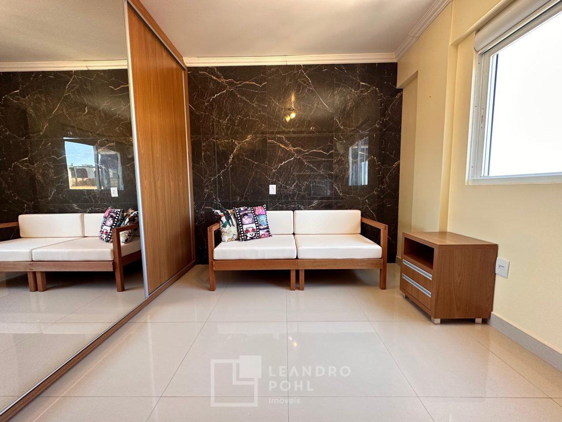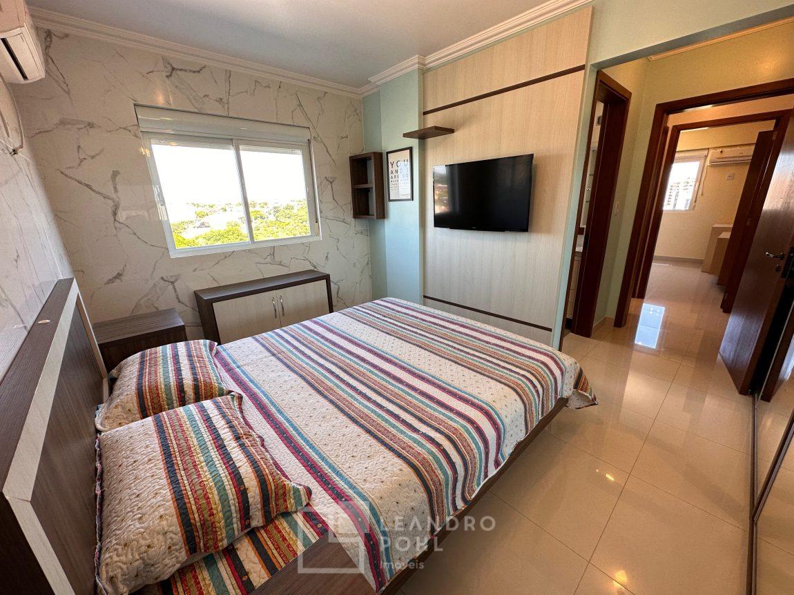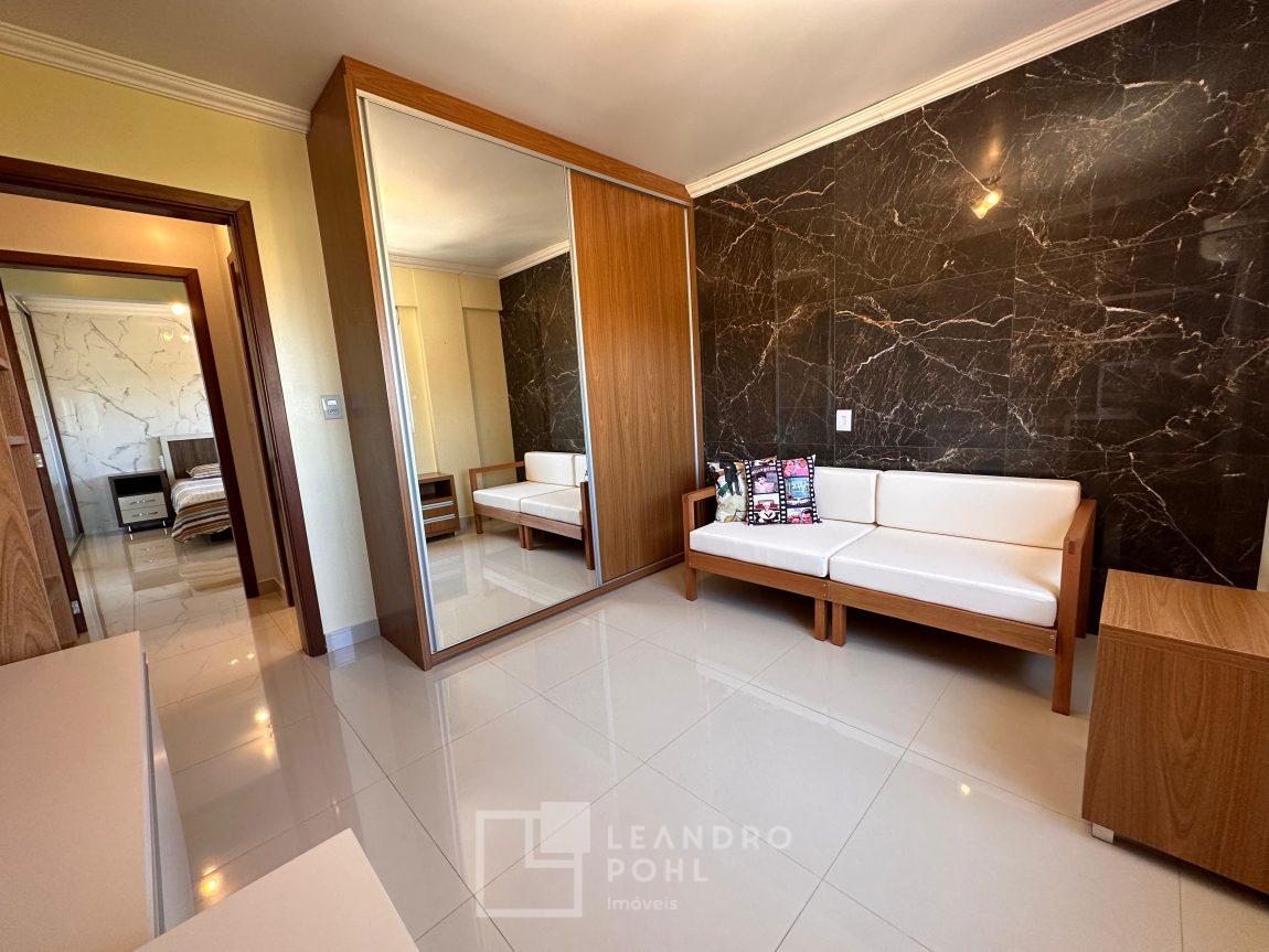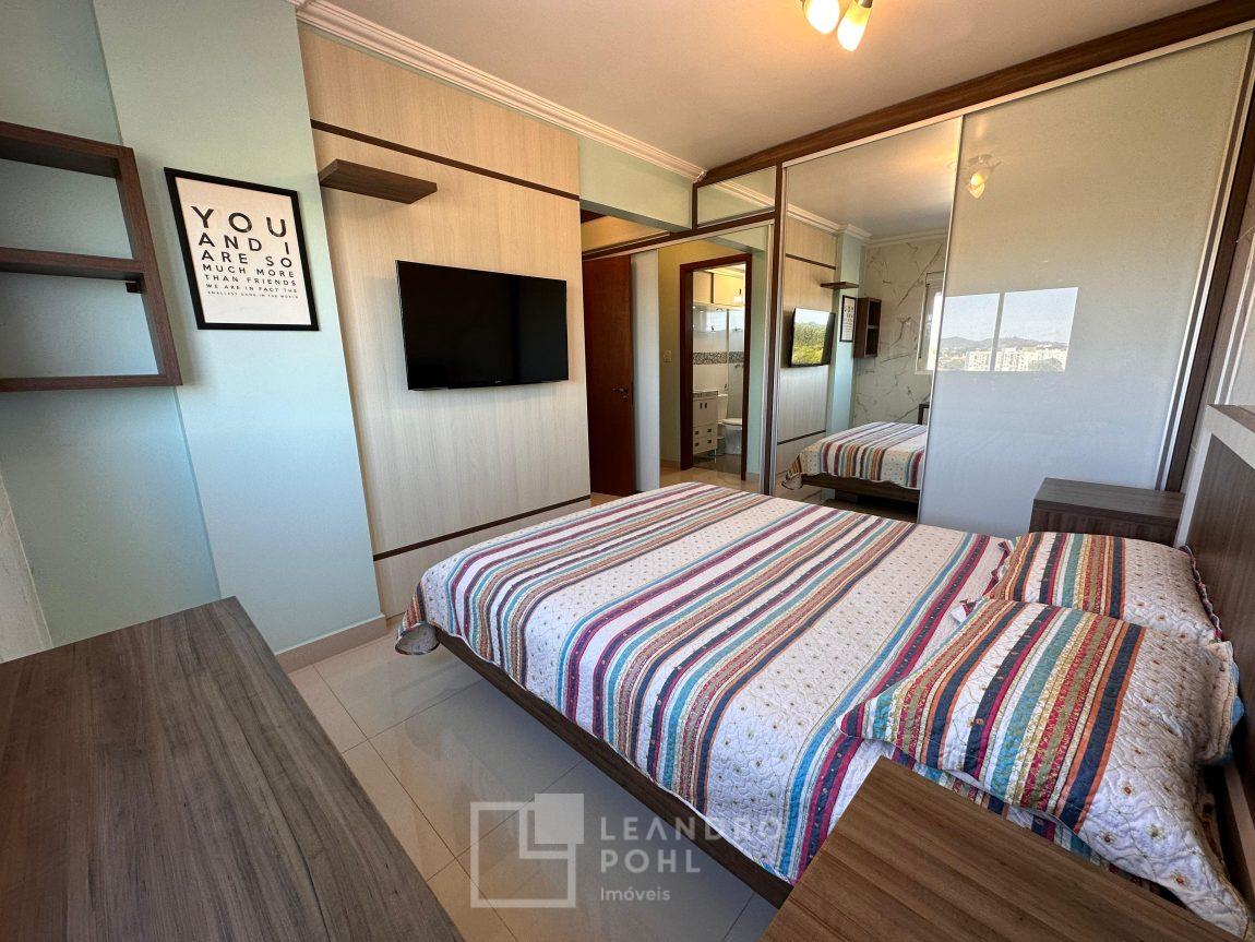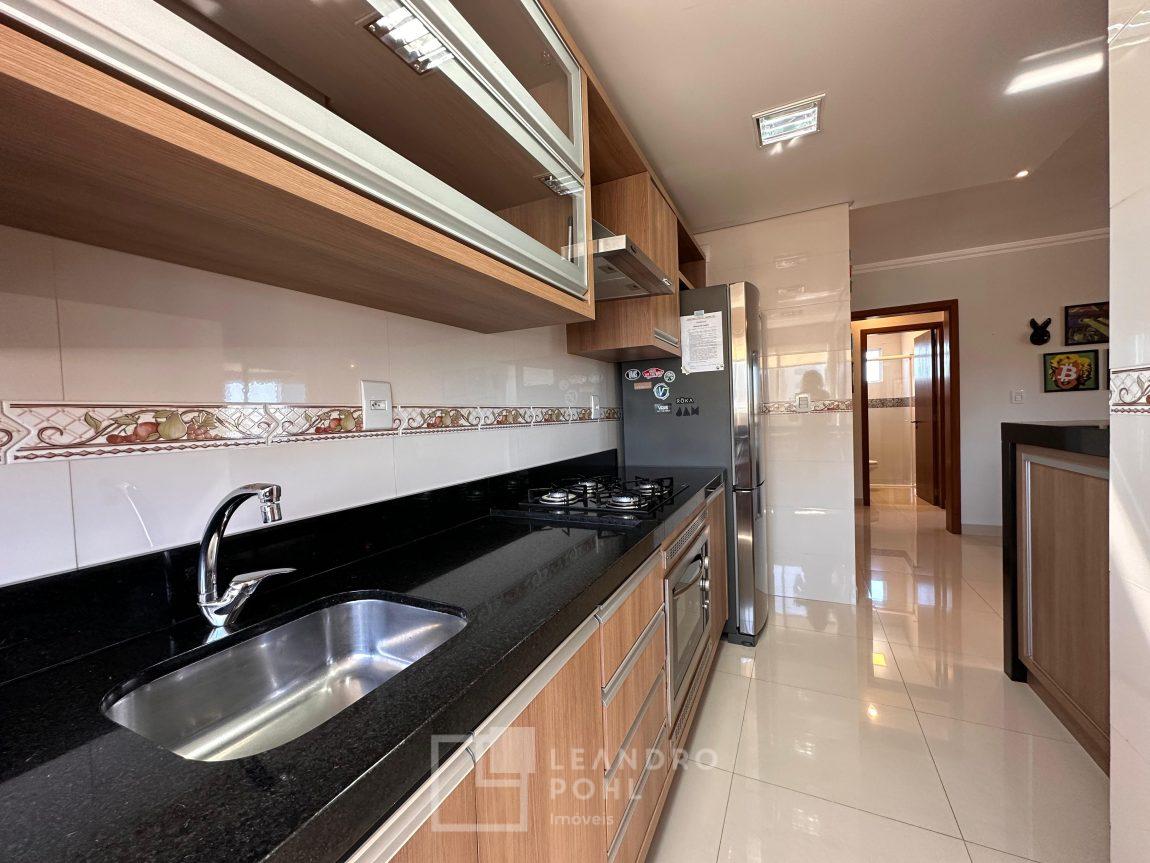 Localizado no andar mais alto e com vista para o Parque dos Dick, permanece mobiliado com; eletrodos, móveis projetados, lustres, lareira, sacada fechada, quartos sob medida, banheiros projetados, área de serviço separada e mobiliada e com junguer instalado, com 2 boxes de estacionamento separados, aceita financiamento bancário.