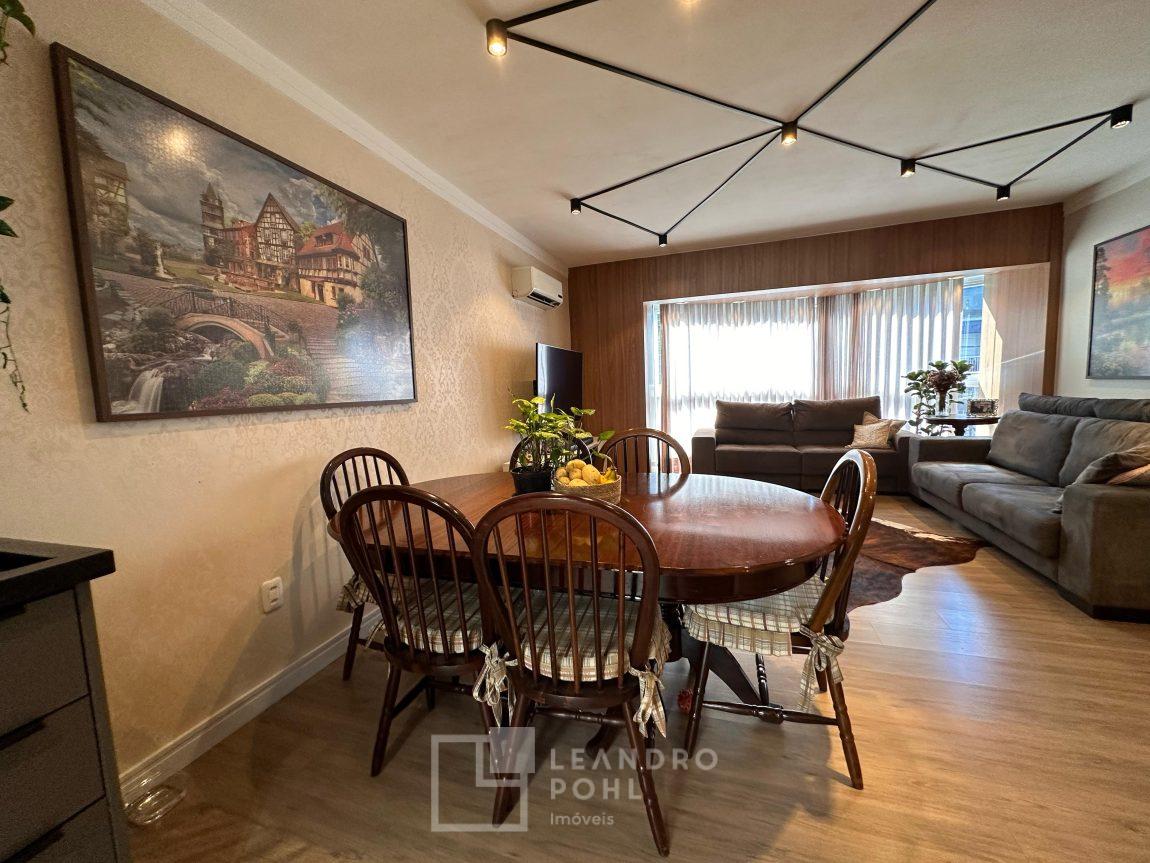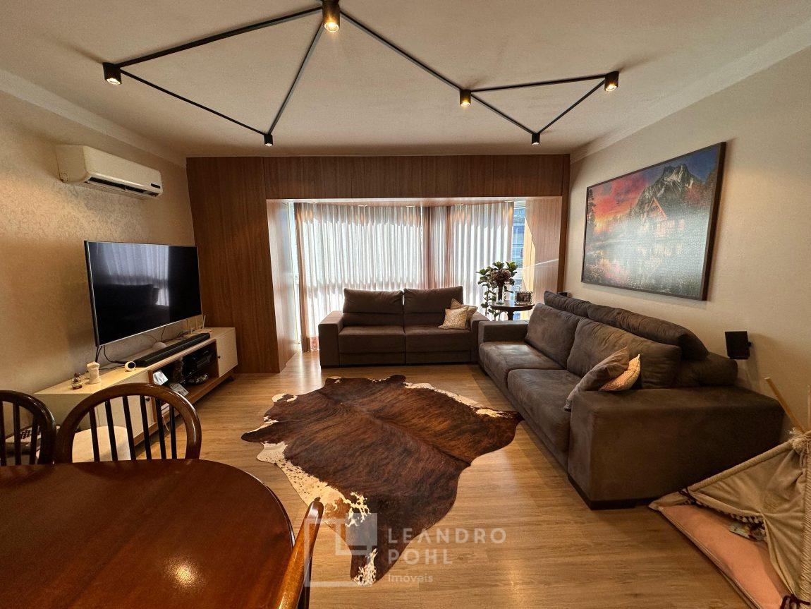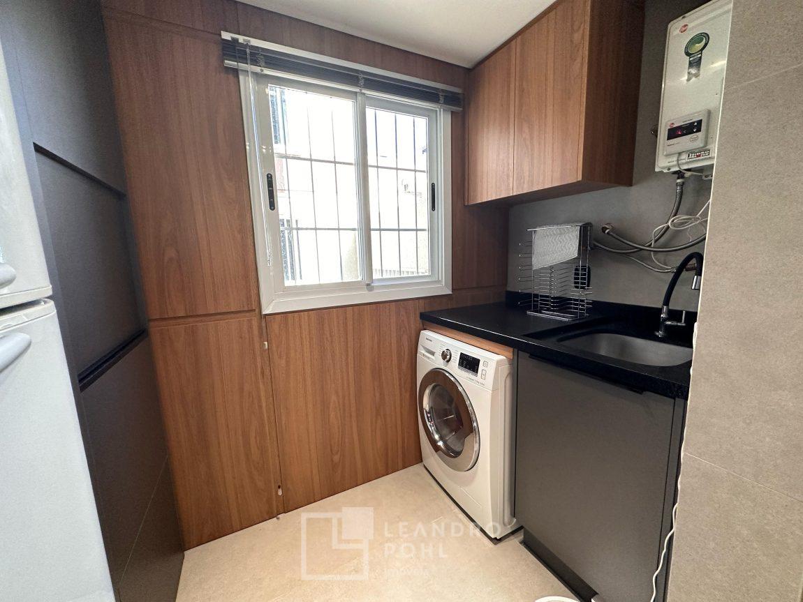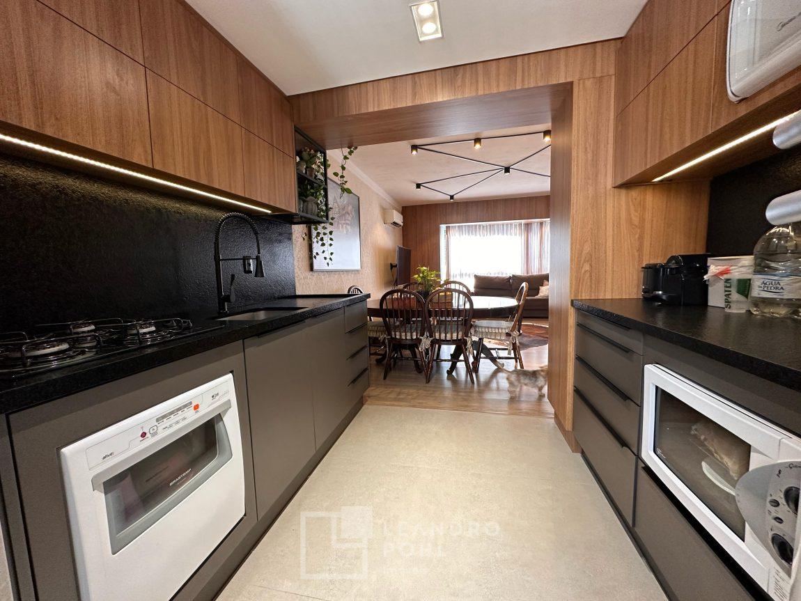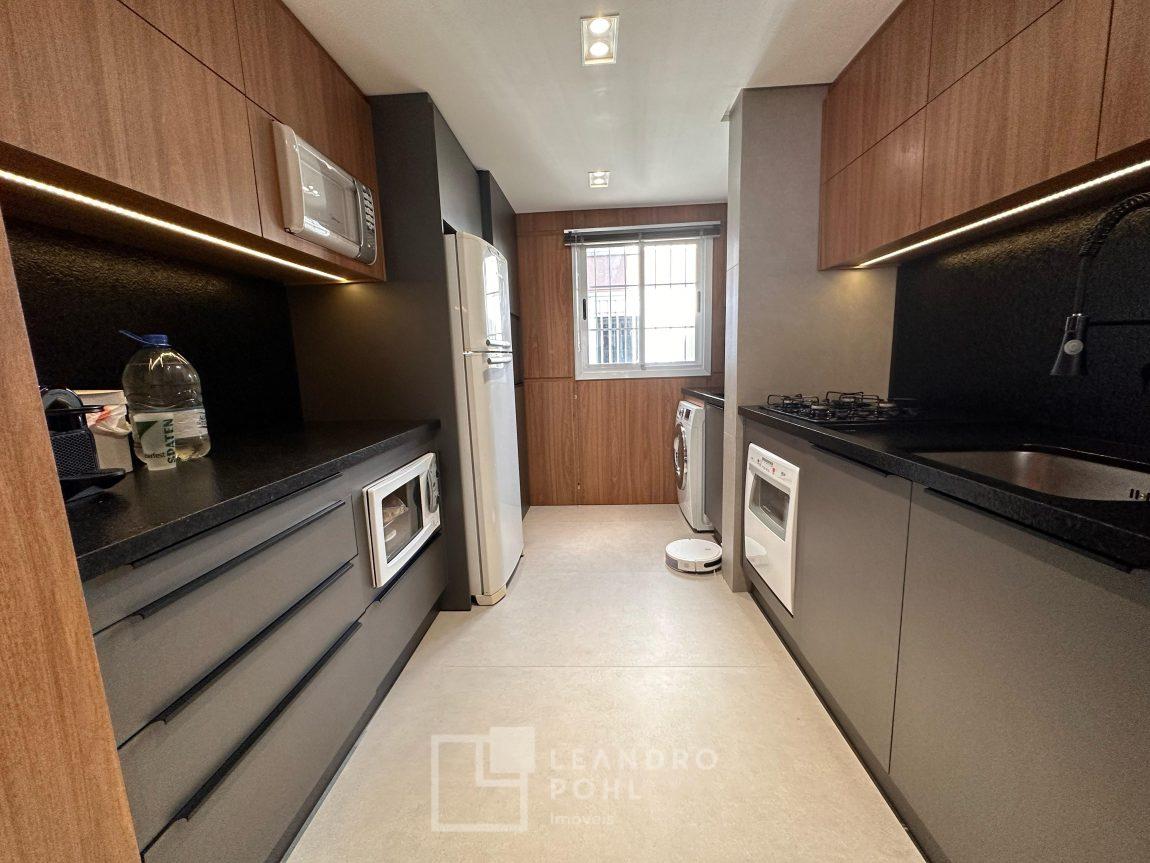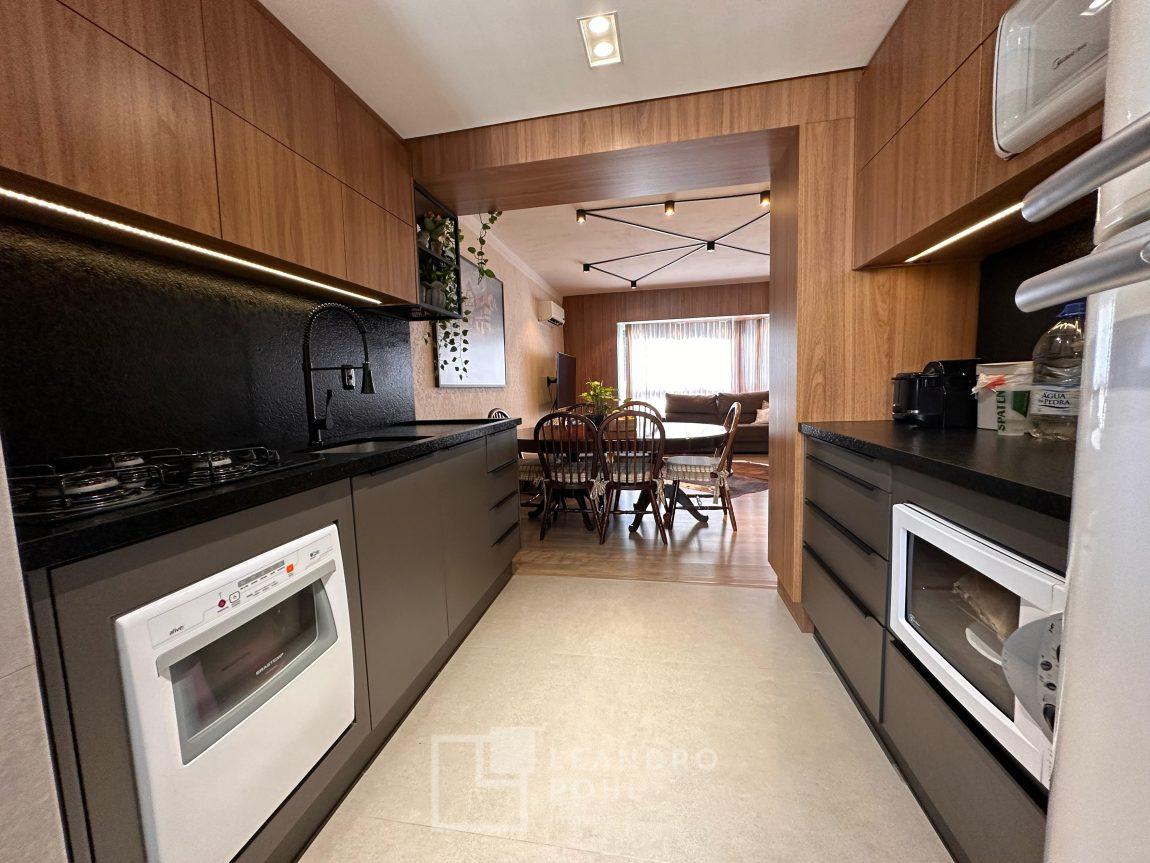 Apartamento de 2 dormitórios com peças amplas, sacada integrada a sala, de frente, reformado, SEMIMOBILIADO (permanecem móveis fixos da cozinha, banheiro e corredor), rebaixamento em gesso, permanece também a iluminação e cortinas, garagem, prédio com elevador.