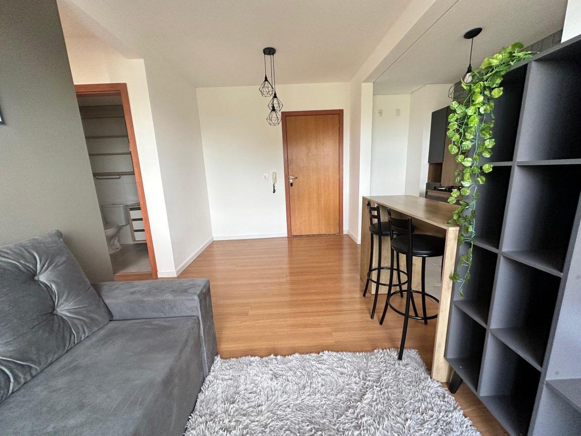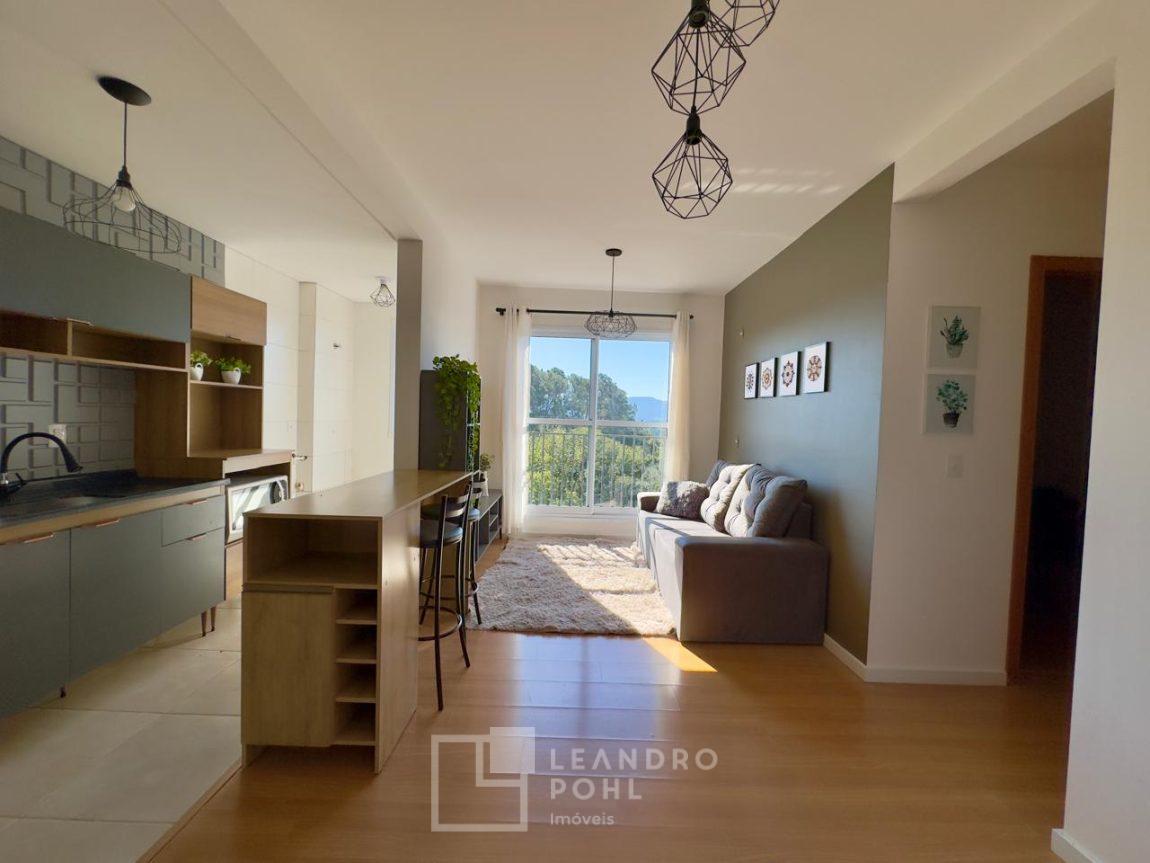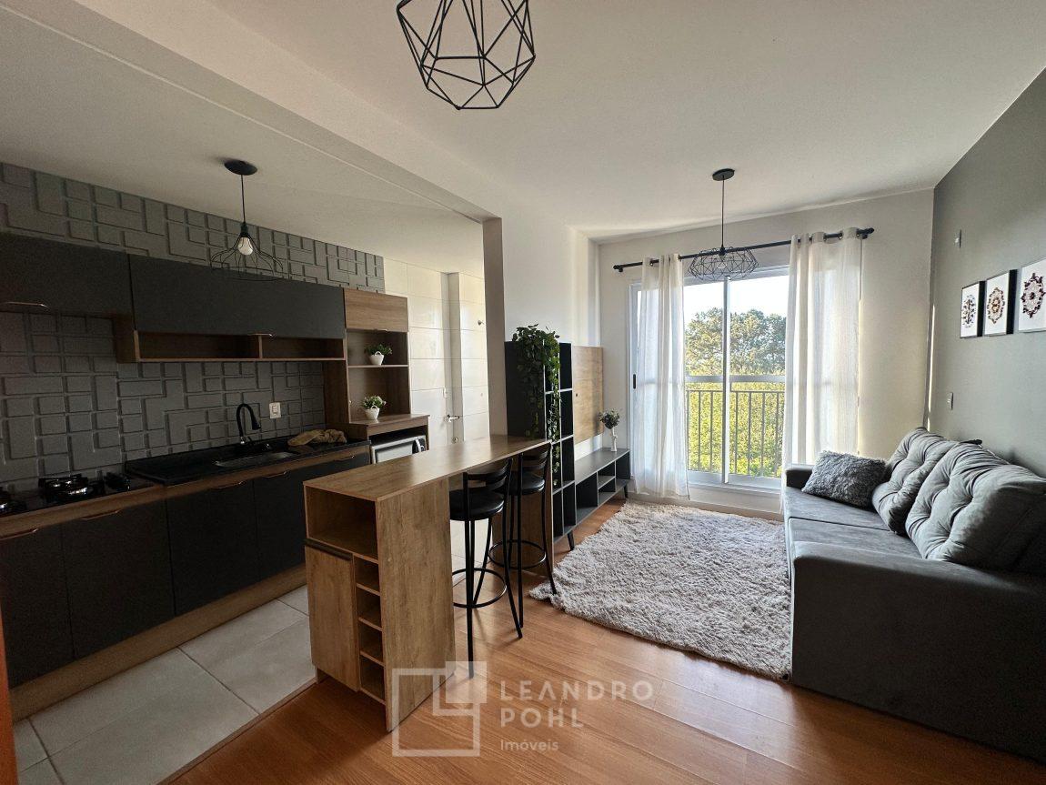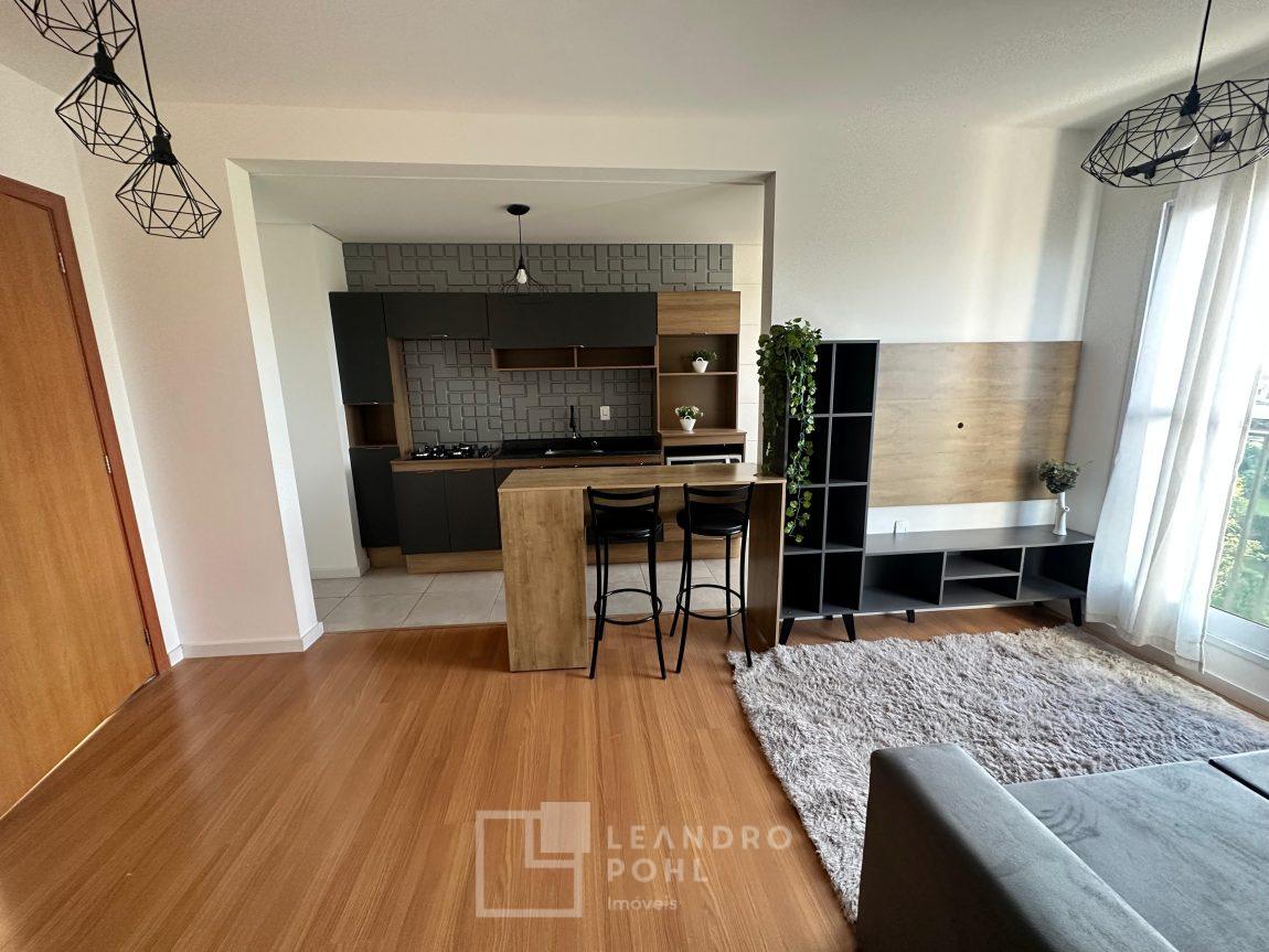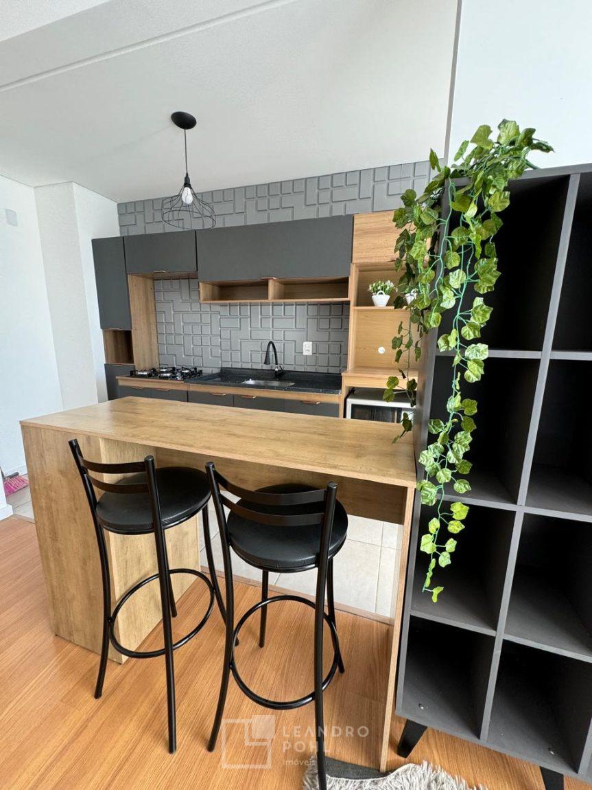 Apartamento mobiliado de 2 dormitórios com vaga de estacionamento descoberta, em condomínio clube fechado, sala, cozinha, banheiro, piso laminado, pronto para morar.