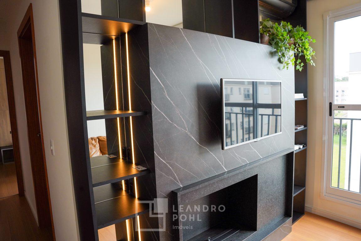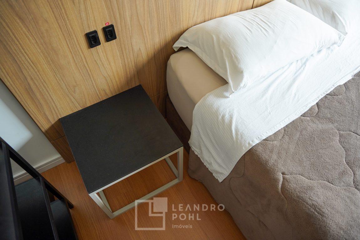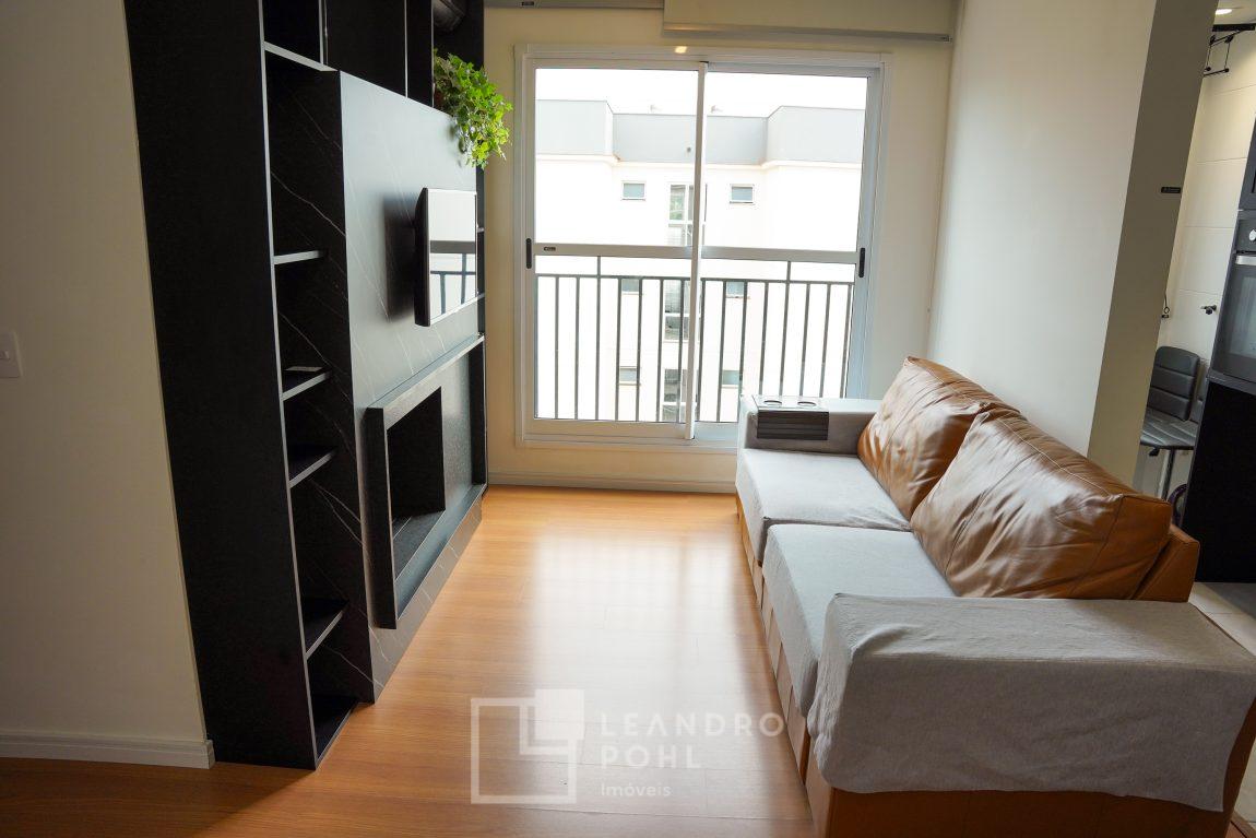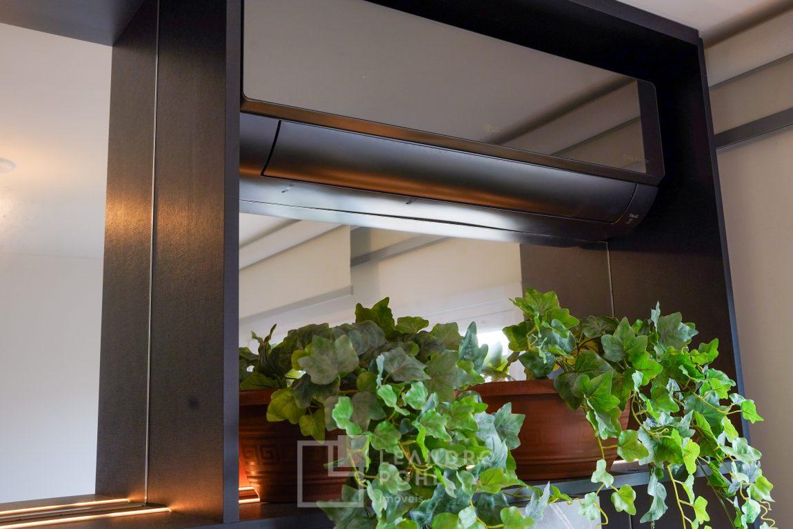 Ar condicionado 12btus, Móveis sob medida e sofá de couro, TV Smart 32" Lareira ecológica, persianas rolo Hunter Douglas, cama Queen (158 X 198cm).