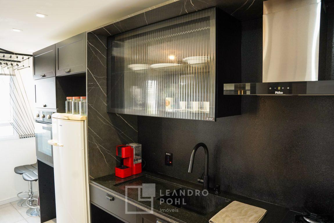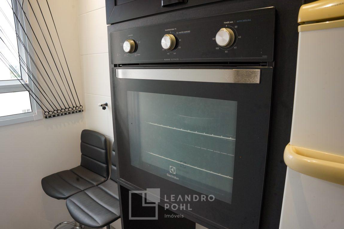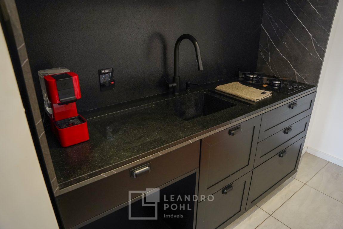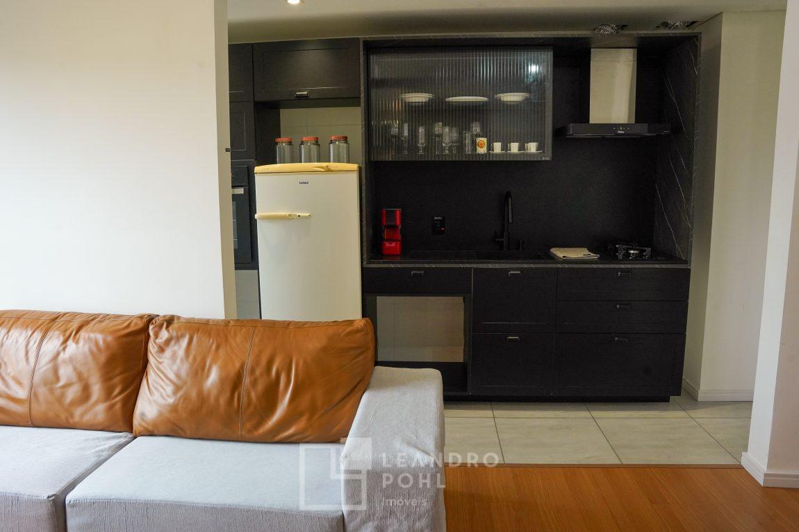 Ar condicionado 12btus, Móveis sob medida e sofá de couro, TV Smart 32" Lareira ecológica, persianas rolo Hunter Douglas, cama Queen (158 X 198cm).