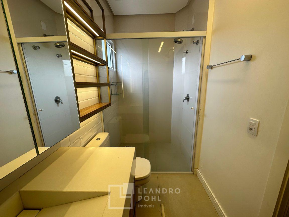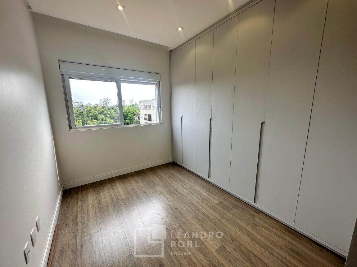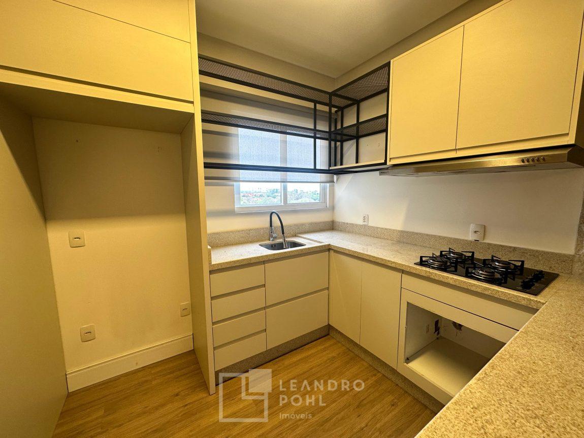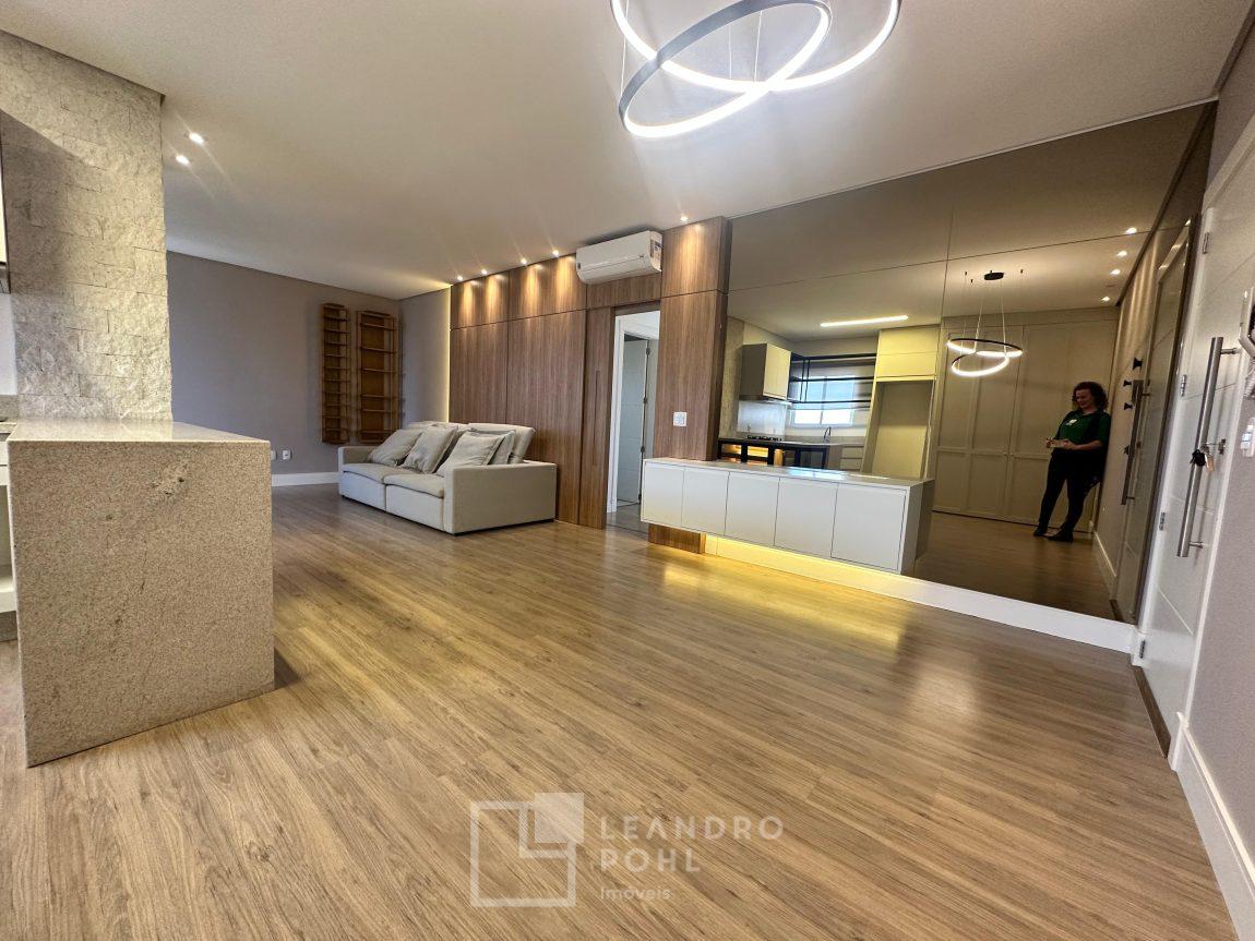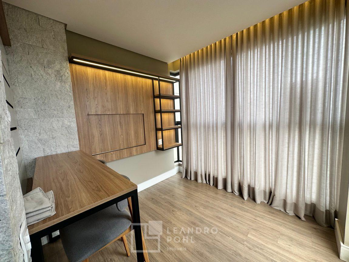 Excelente apartamento, 2 dormitórios, SEMI MOBILIADO, iluminação, split, metais, lareira, espaço gourmet, suíte com closet, piso laminado, área de serviço, box duplo de estacionamento com 22 m², vista para o Parque dos Dick, sacada, gás central, agua individual, espera para split, elevador.