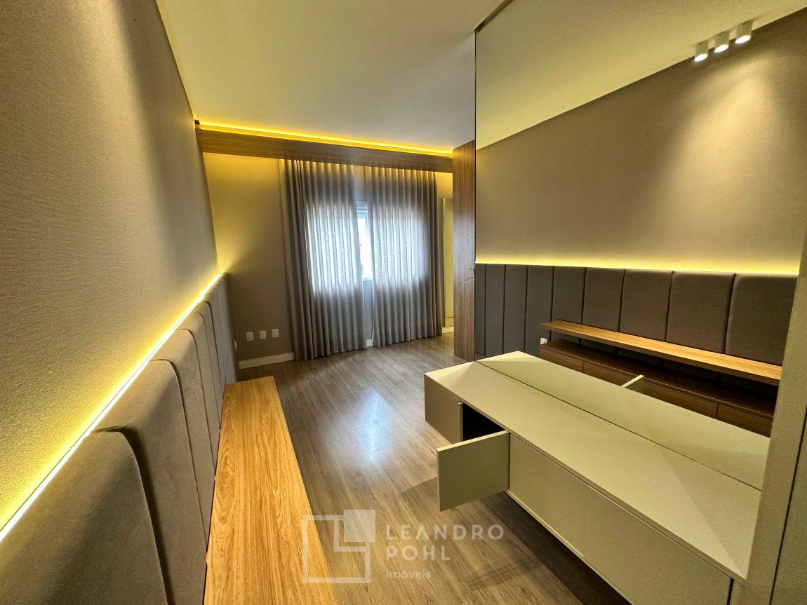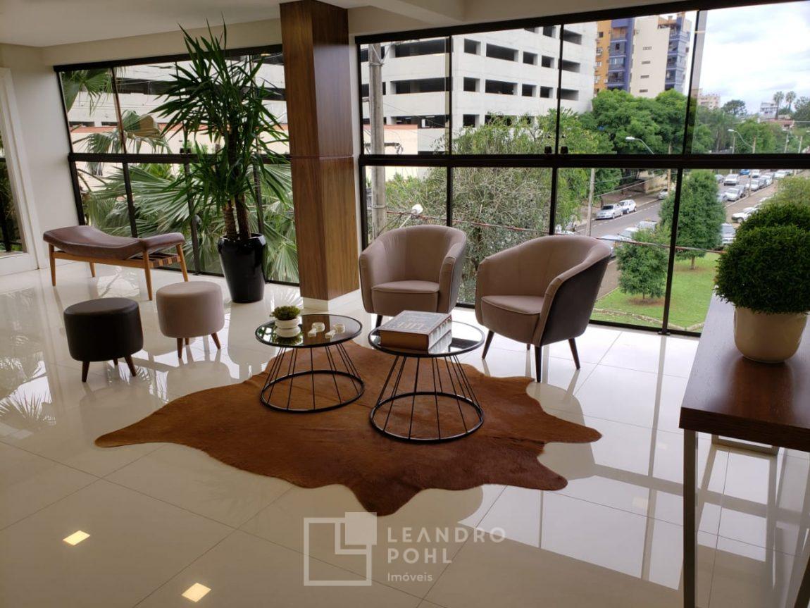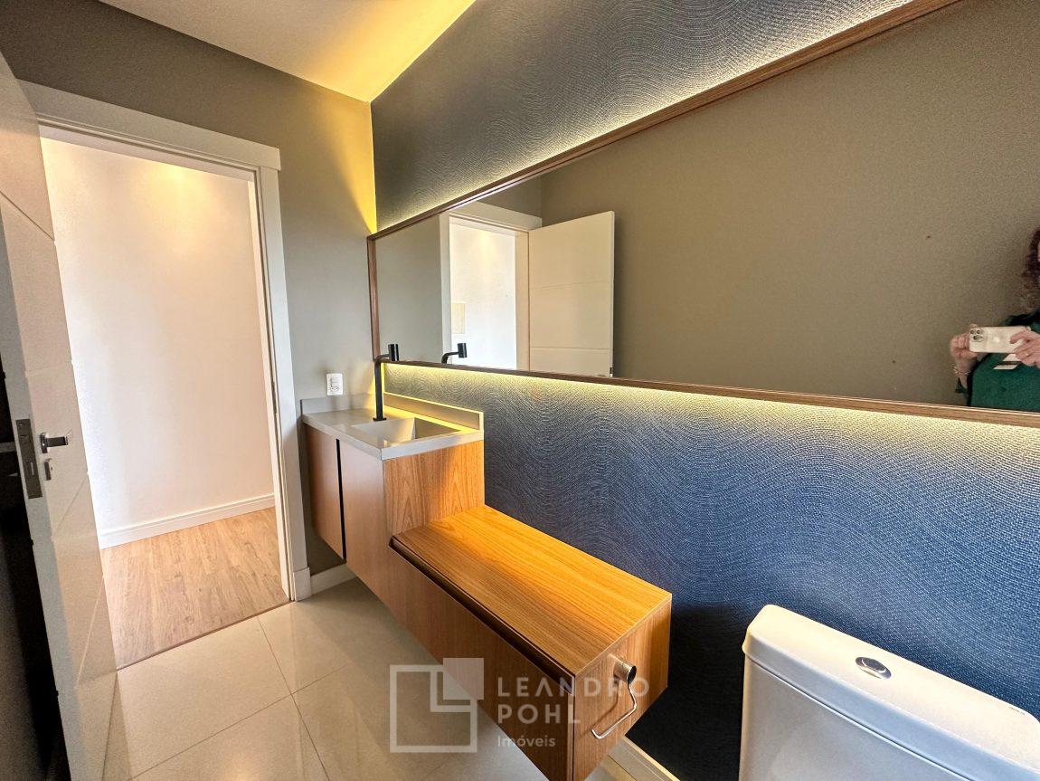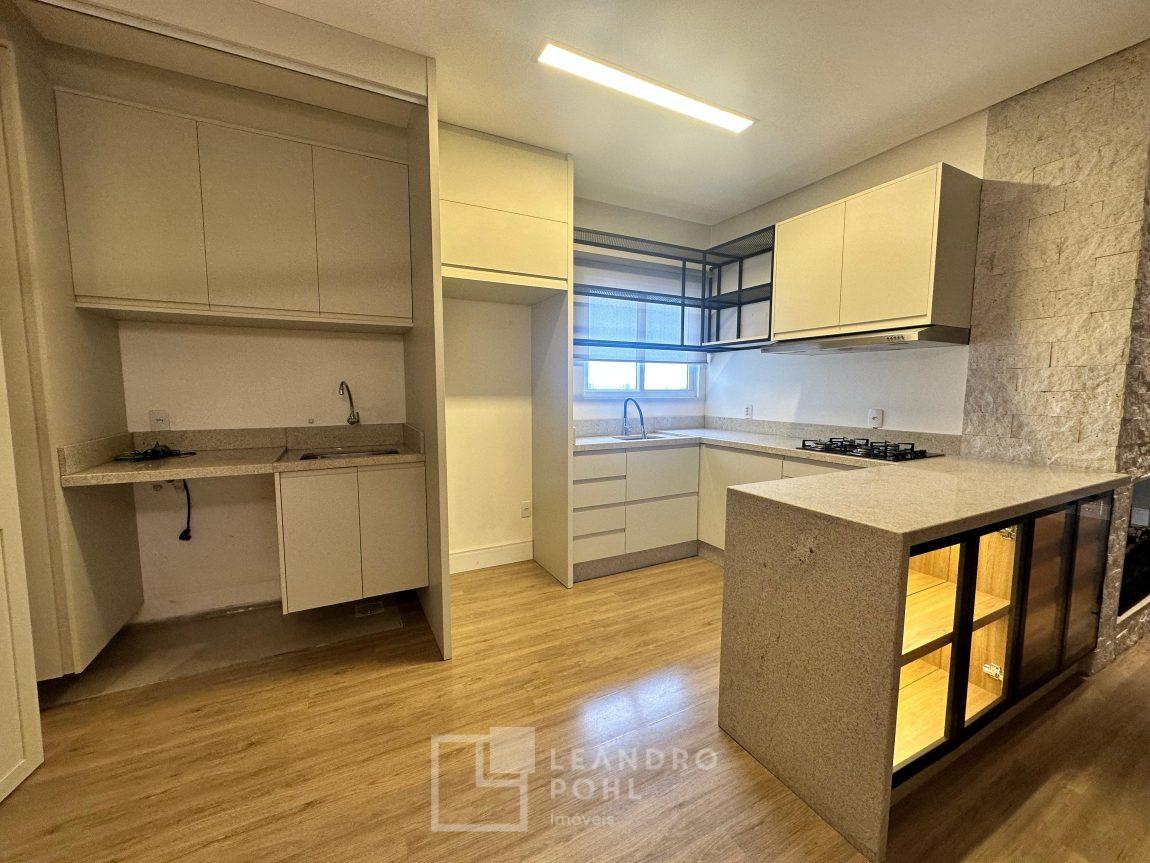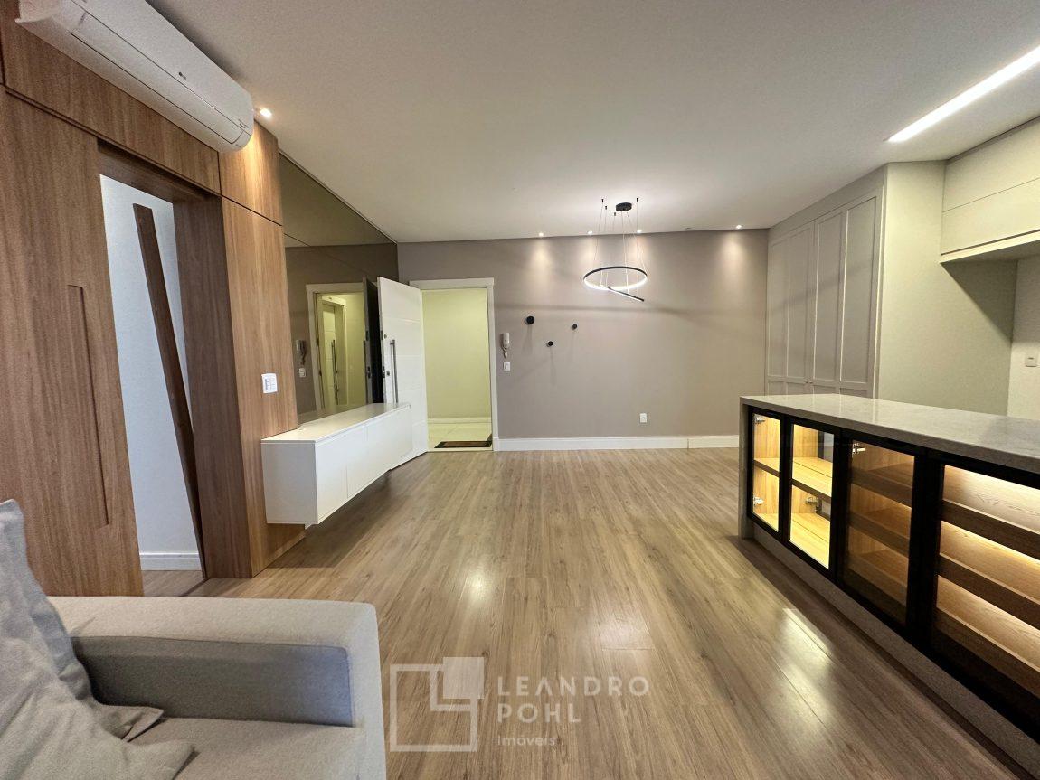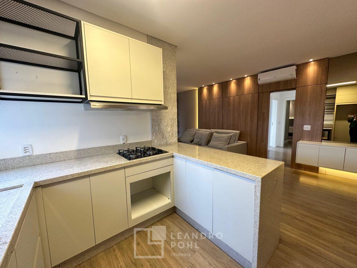 Excelente apartamento, 2 dormitórios, SEMI MOBILIADO, iluminação, split, metais, lareira, espaço gourmet, suíte com closet, piso laminado, área de serviço, box duplo de estacionamento com 22 m², vista para o Parque dos Dick, sacada, gás central, agua individual, espera para split, elevador.