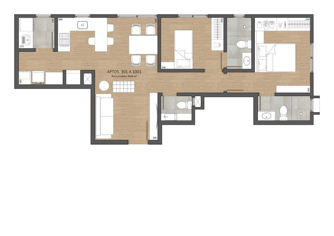 • Apartamentos com 2 dormitórios sendo 1 suíte