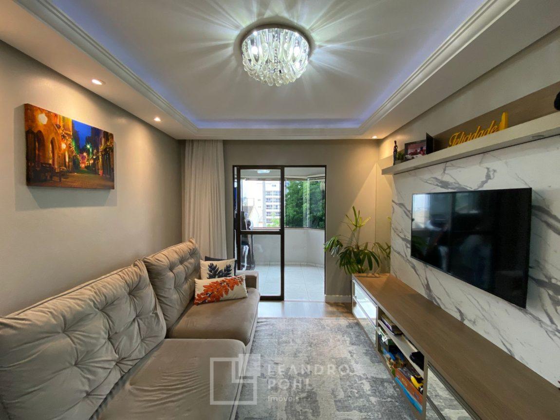 Apartamento semi-mobiliado, permanecem Móveis fixos, cooktop, forno, micro-ondas e ar condicionados.