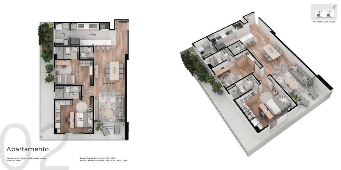 - Empreendimento com 18 pavimentos de apartamentos e duas torres