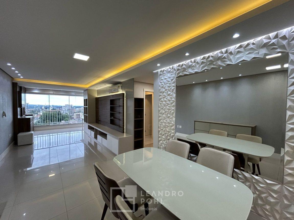 No imóvel permanecem: móveis projetados e fixos, mesa da sala de jantar, luminárias, ar-condicionados, torneiras, louças, fogão, guarda-roupas e quadros.