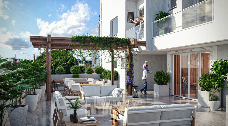 Com 2 salões de festas com churrasqueira, varanda gourmet, lavabo, condomínio com quiosque, área de lazer, quadra esportiva para criança, conforme projeto (a área será entregue equipada, e decorada, conforme projeto)