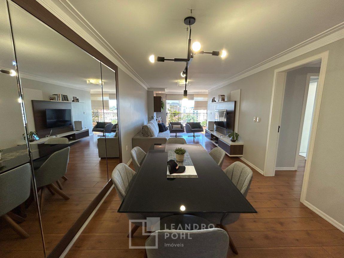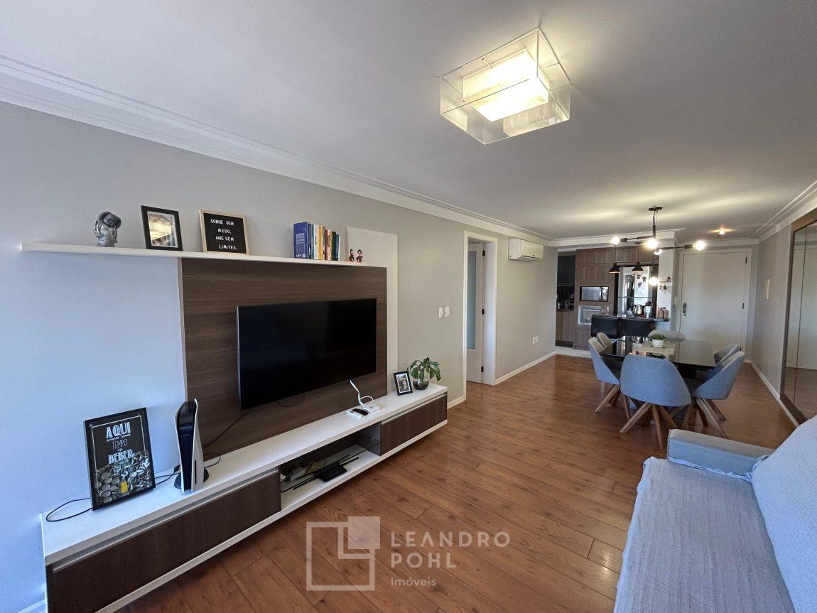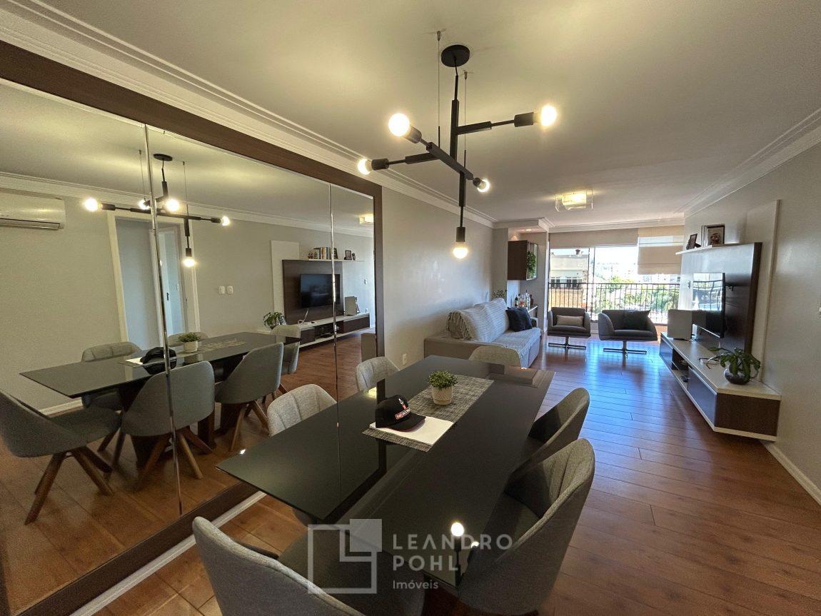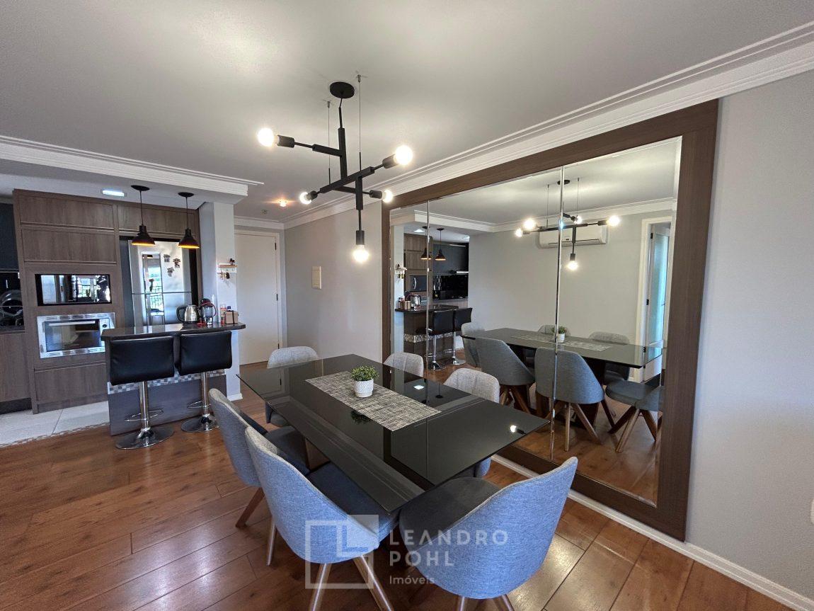 Apartamento semimobiliado (permanecem móveis fixos), persianas, pedras, luminárias, torneiras, ar condicionado, bancada e banquetas, 2 dormitórios, suíte, sacada, churrasqueira, home office, 2 garagens, andar alto, localizado próximo de supermercados, restaurantes, escolas, creches, pontos de ônibus e táxi, cercado com comércios locais e bem próximo do Centro da cidade, consulte as condições de pagamento.