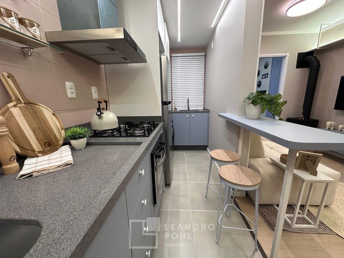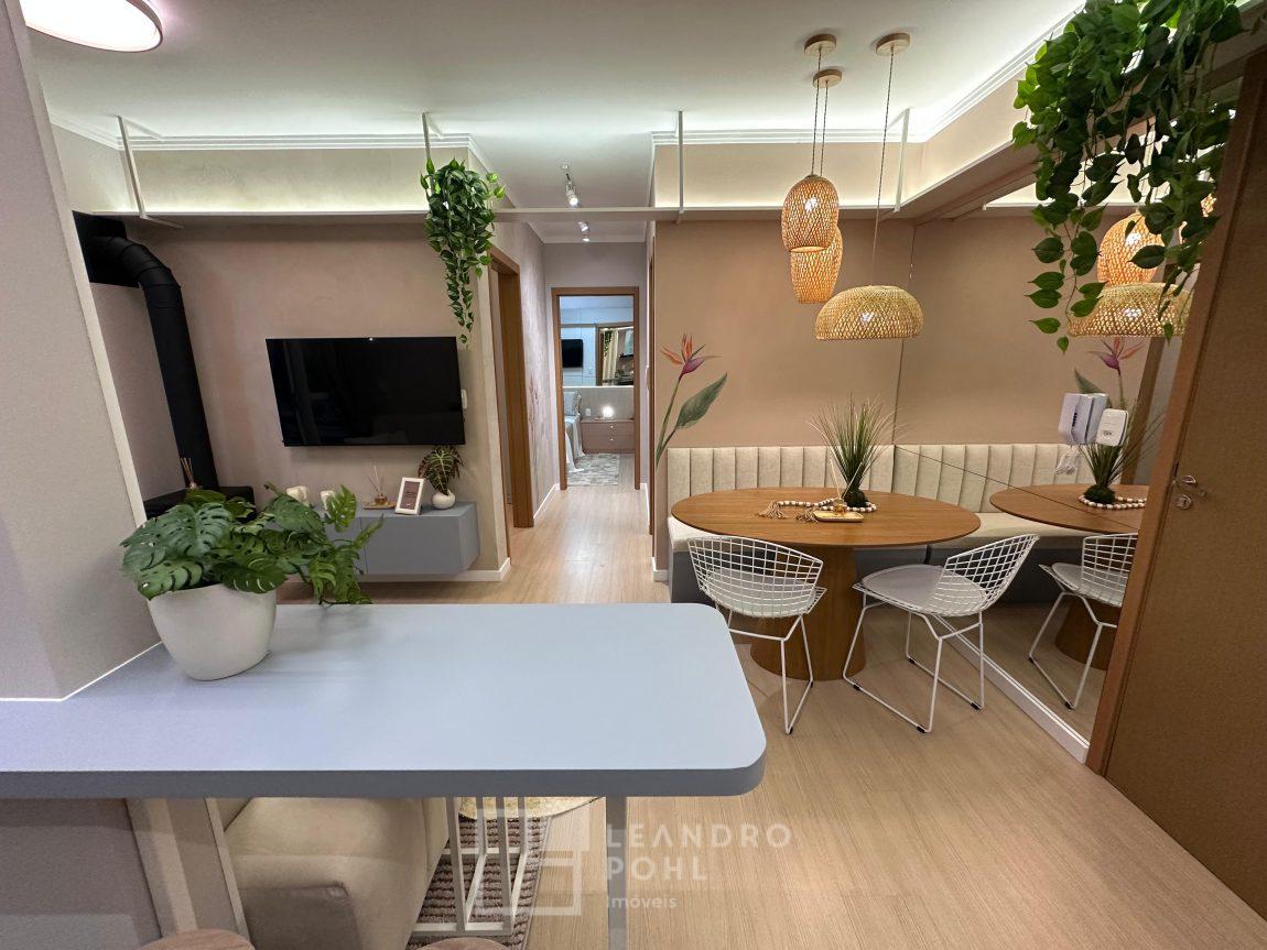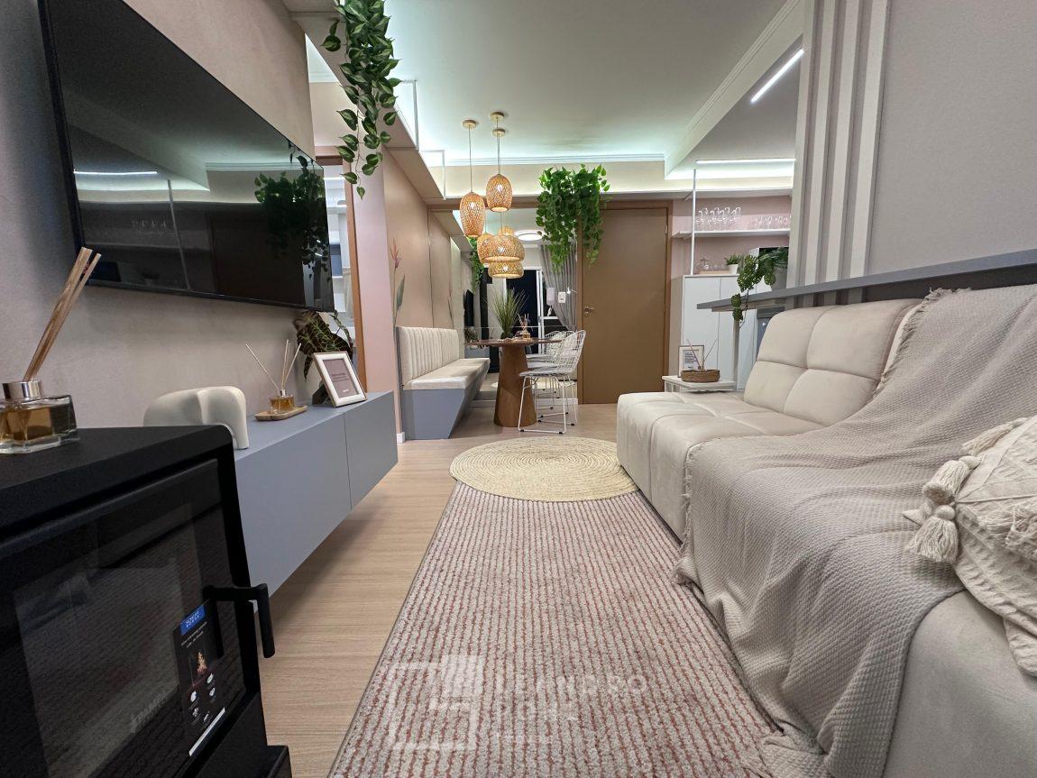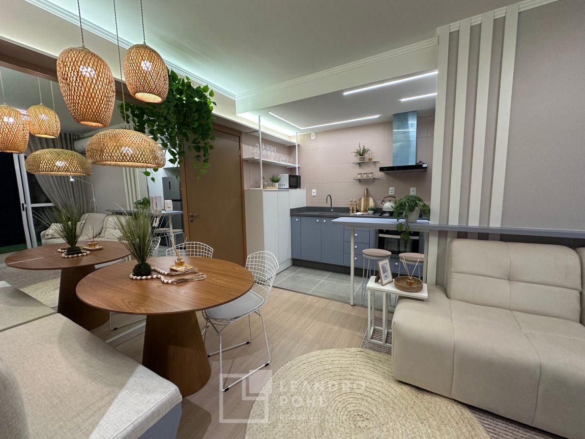 Apartamento modelo garden, 2 dormitórios, piso laminado, sala de estar e cozinha conjugadas, sacada, bem arejado, gás central, agua individual, espera para split, vaga de estacionamento, em condomínio fechado com infraestrutura completa de clube.