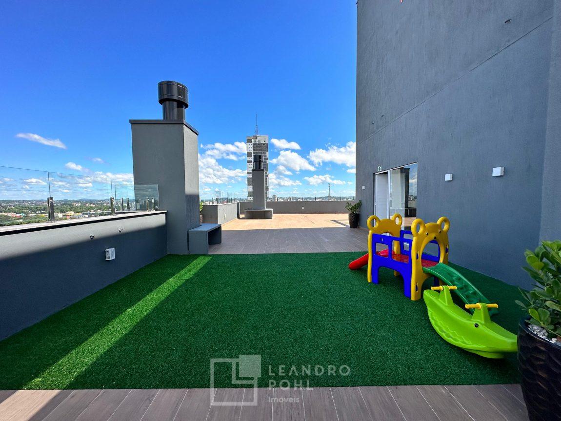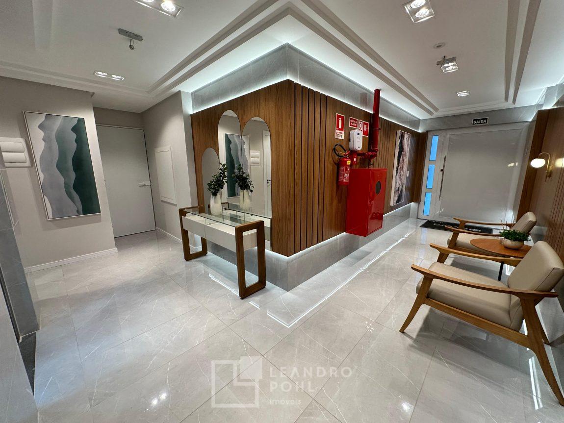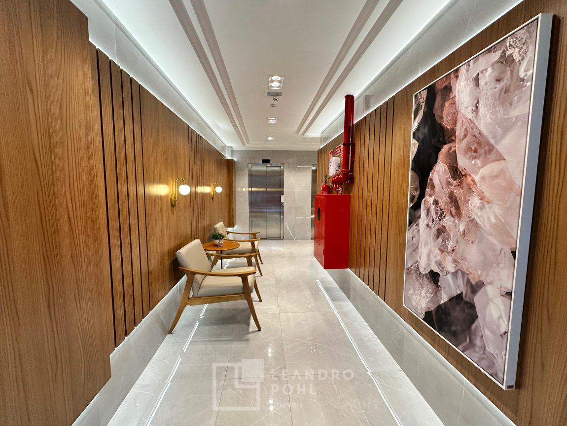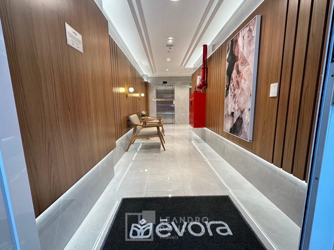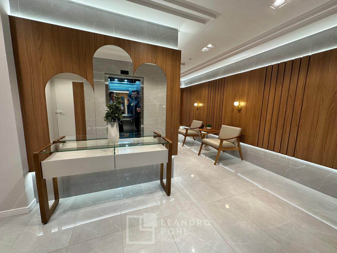 O empreendimento conta com uma infraestrutura diferenciada, com: hall de entrada mobiliado, dois elevadores e um belo rooftop com salão de festas, espaço kids e uma vista linda. São 11 andares com somente 3 apartamentos por andar e 3 lojas, conta com aberturas em alumínio branco, espera para gás, split e medidores individuais de agua.