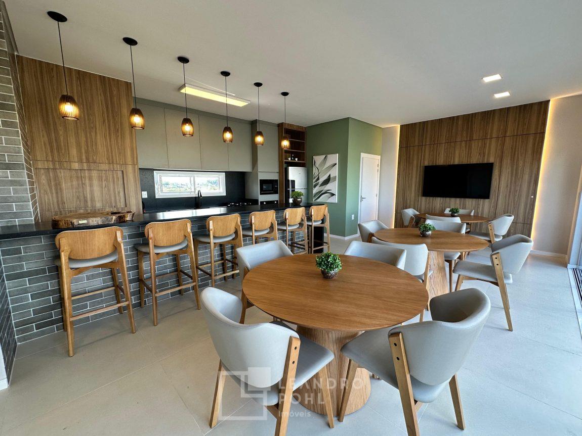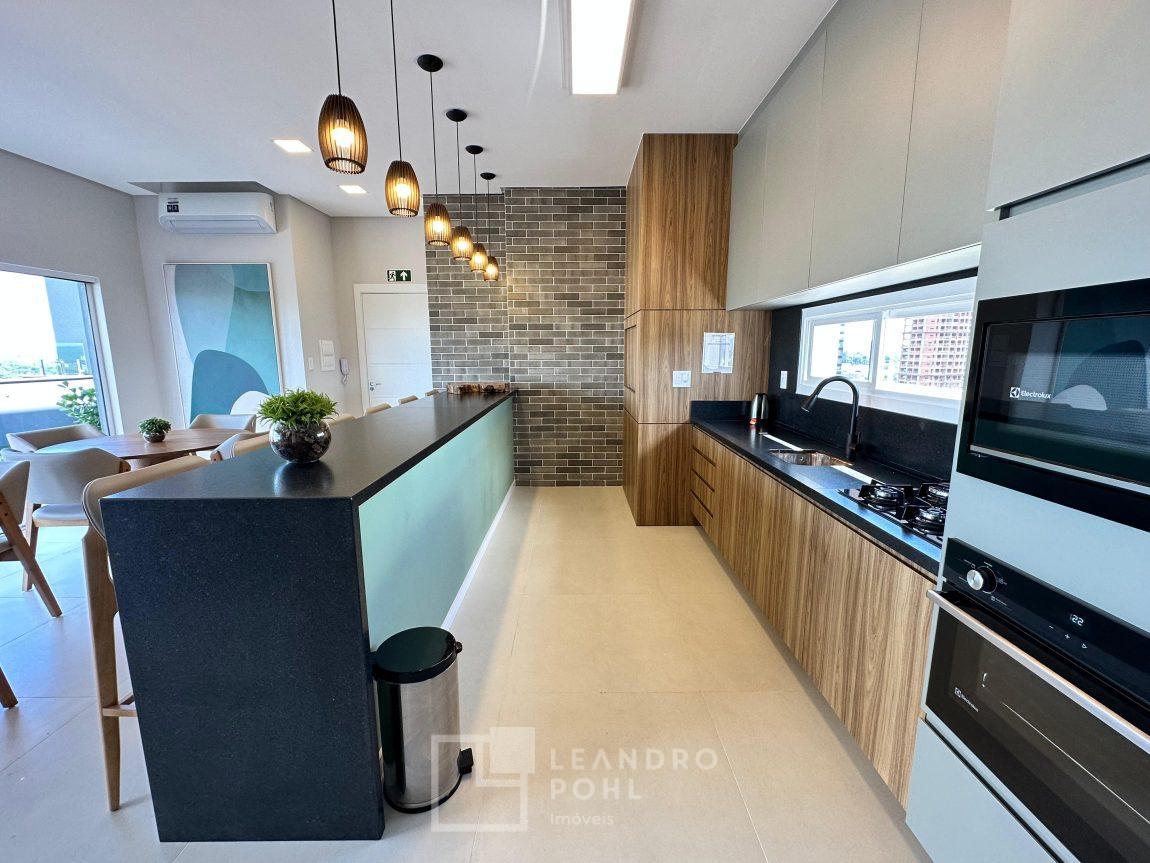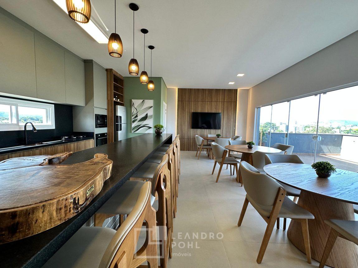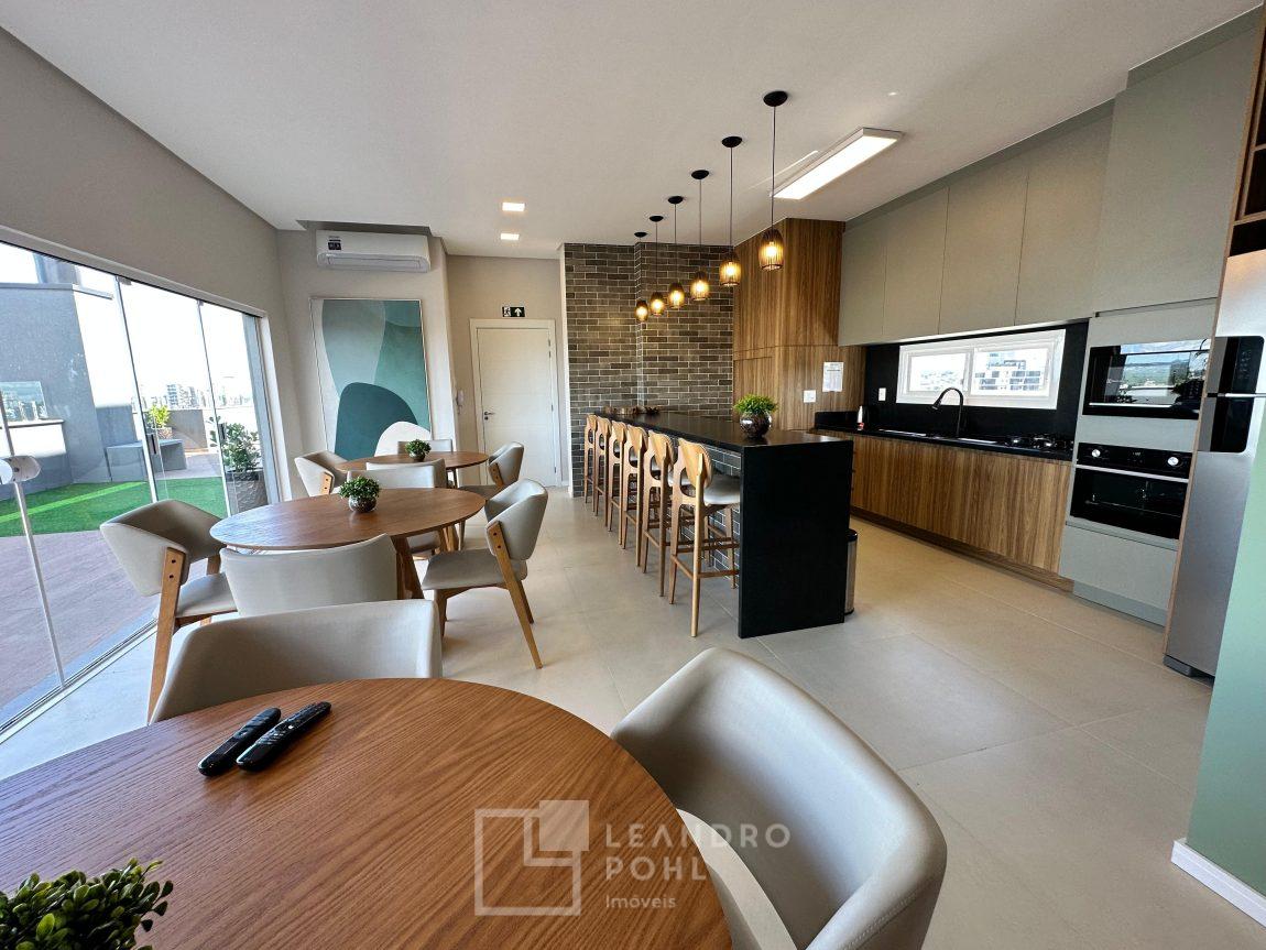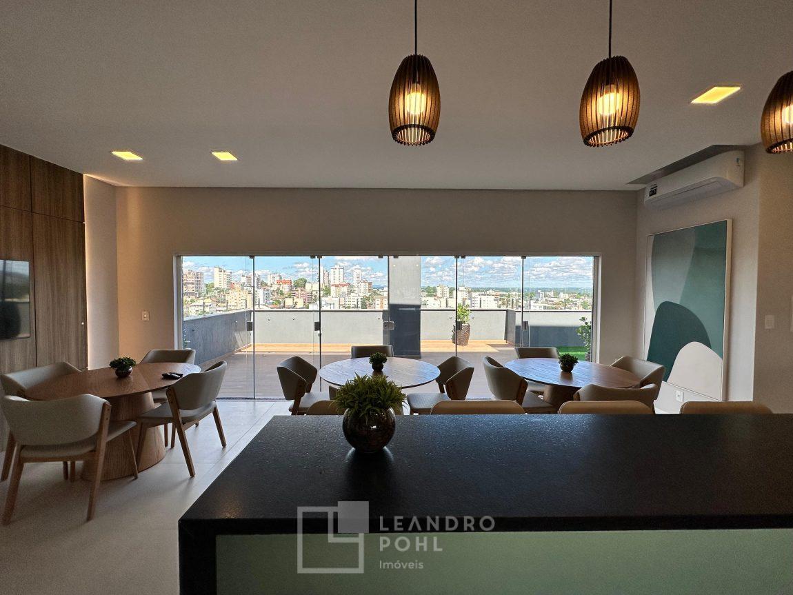 O empreendimento conta com uma infraestrutura diferenciada, com: hall de entrada mobiliado, dois elevadores e um belo rooftop com salão de festas, espaço kids e uma vista linda. São 11 andares com somente 3 apartamentos por andar e 3 lojas, conta com aberturas em alumínio branco, espera para gás, split e medidores individuais de agua.