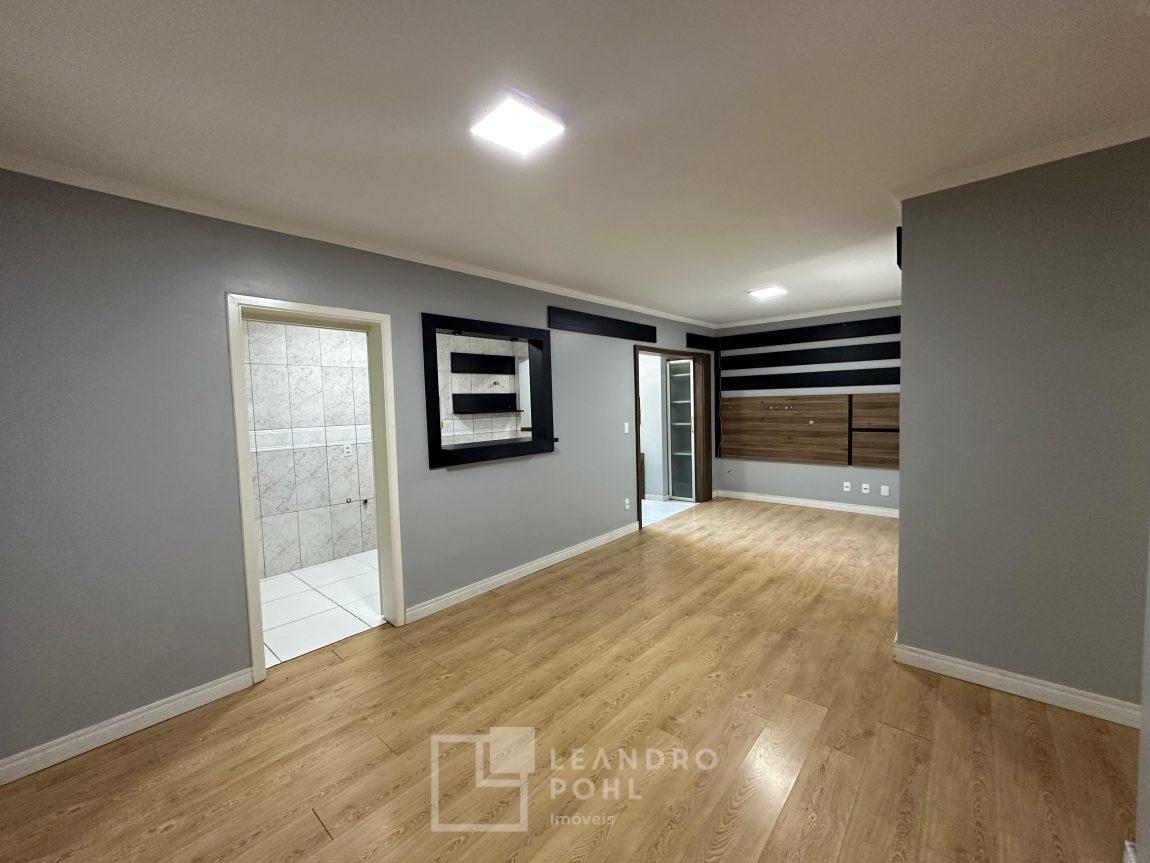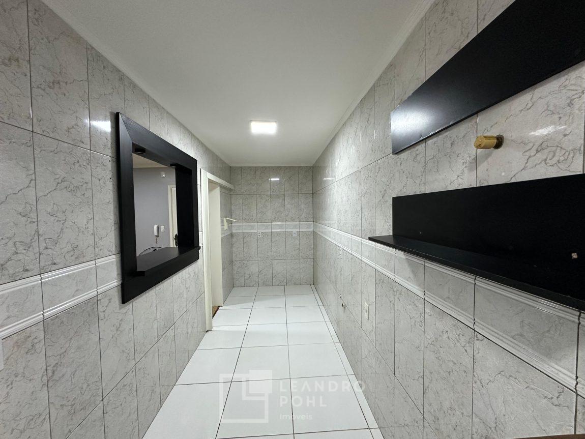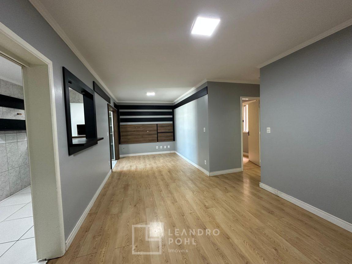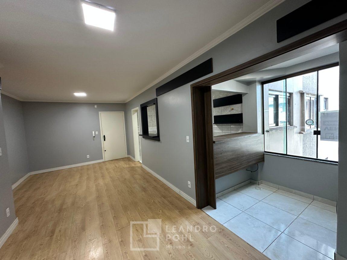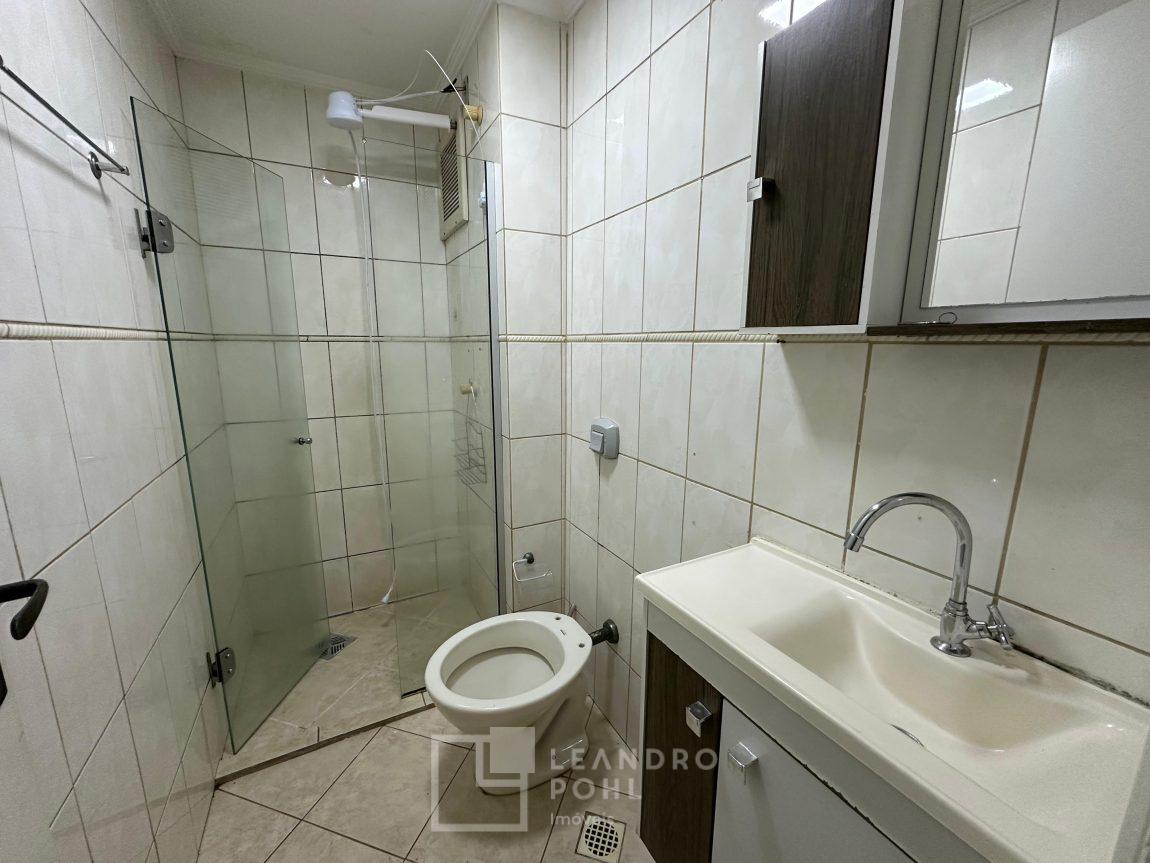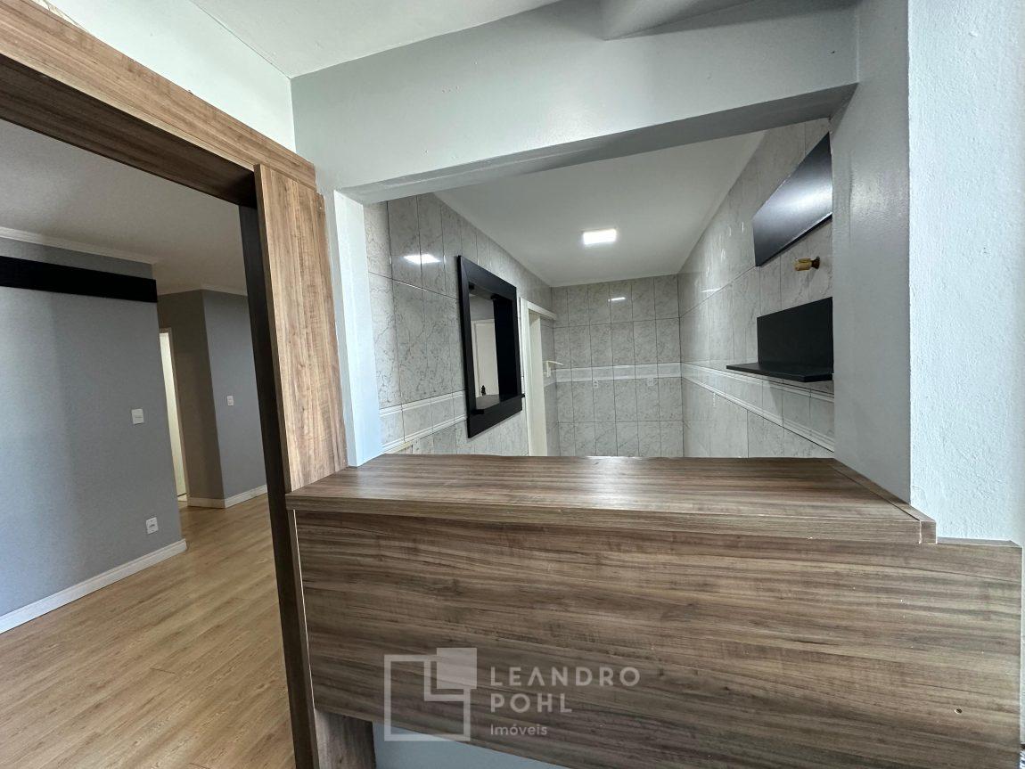 Apartamento de 02 dormitórios, cozinha, sala de estar e jantar, sacada fechada, banheiro social, churrasqueira, box de estacionamento.