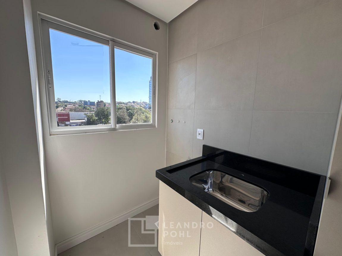 Apartamento novo, com 2 dormitórios, suíte, semimobiliado, de frente, ambientes integrados, garagem.