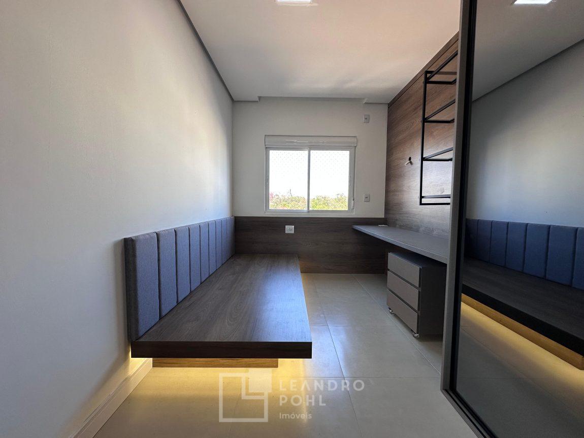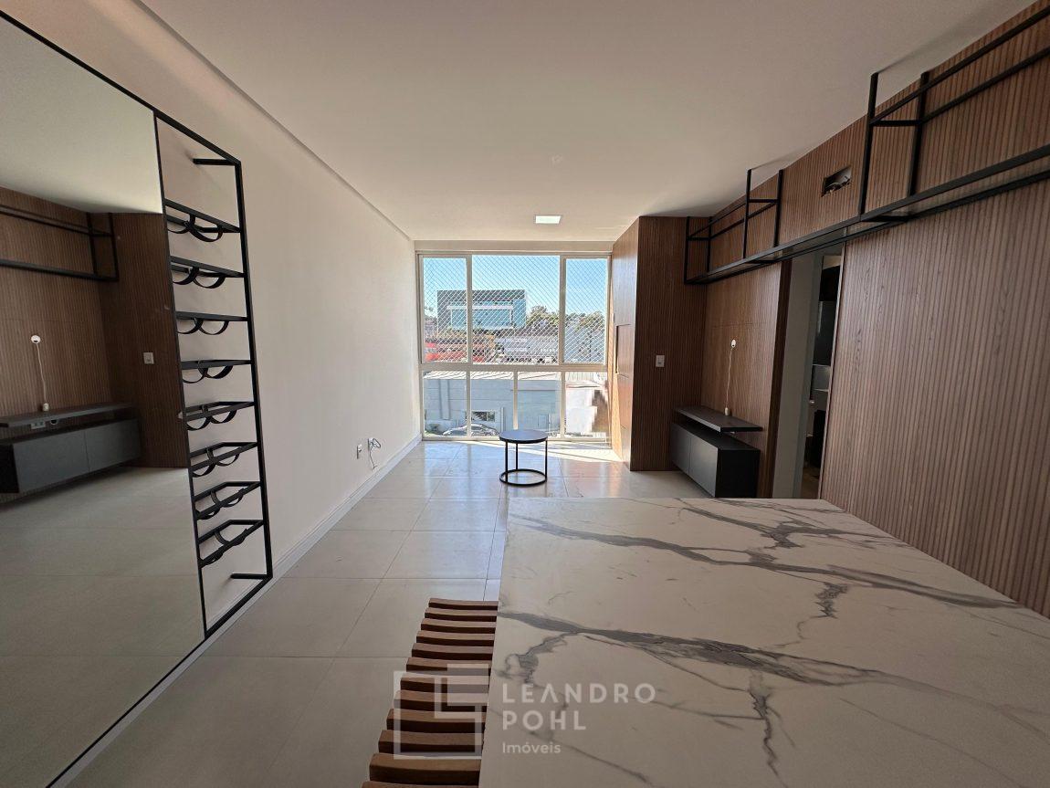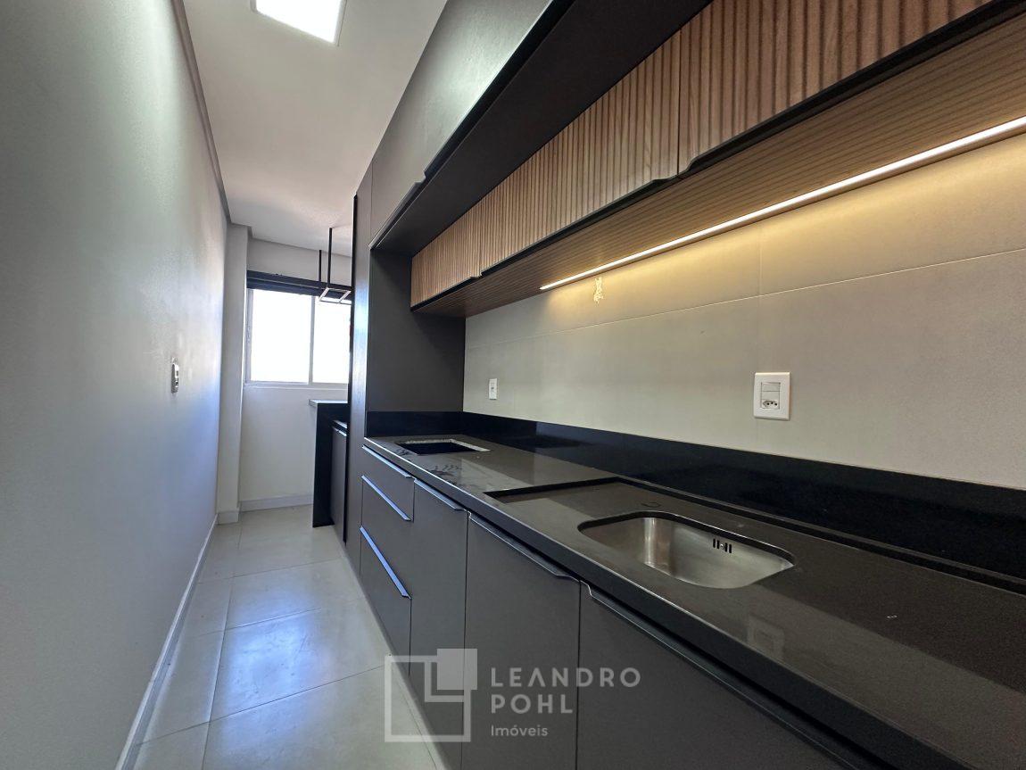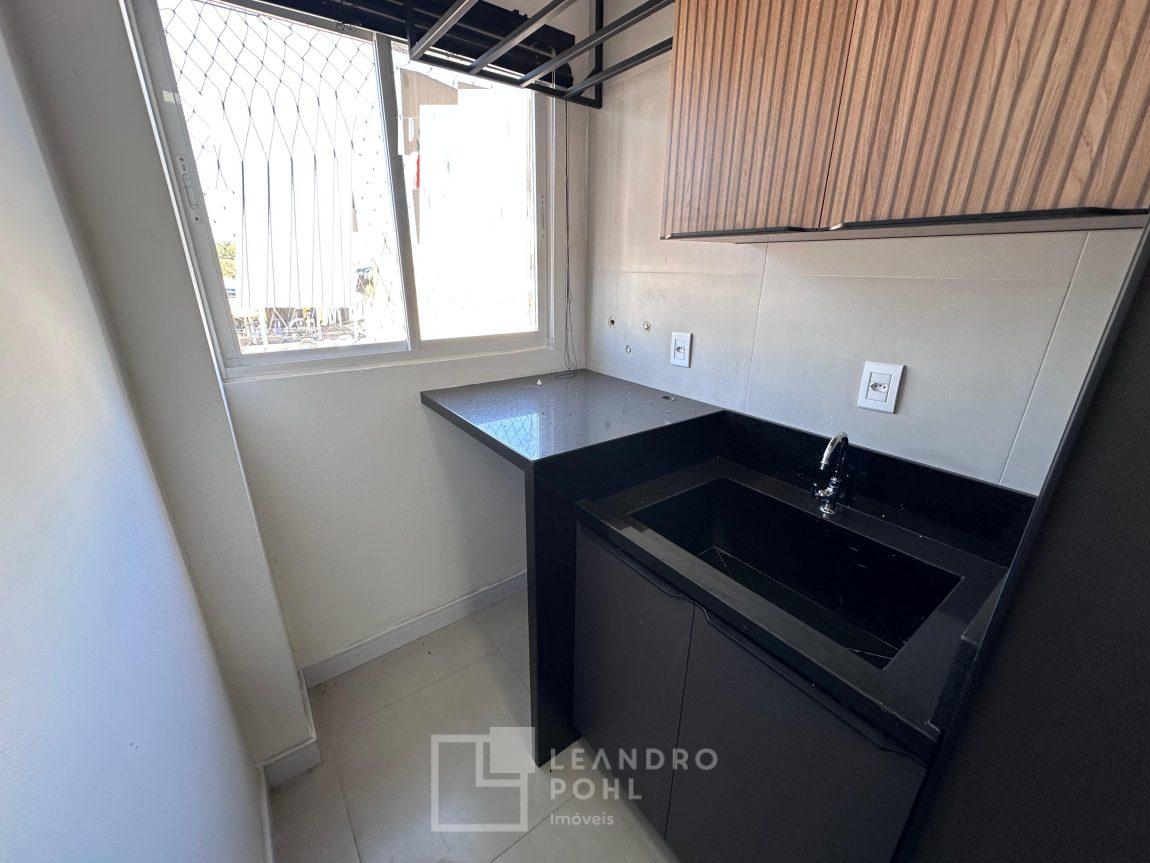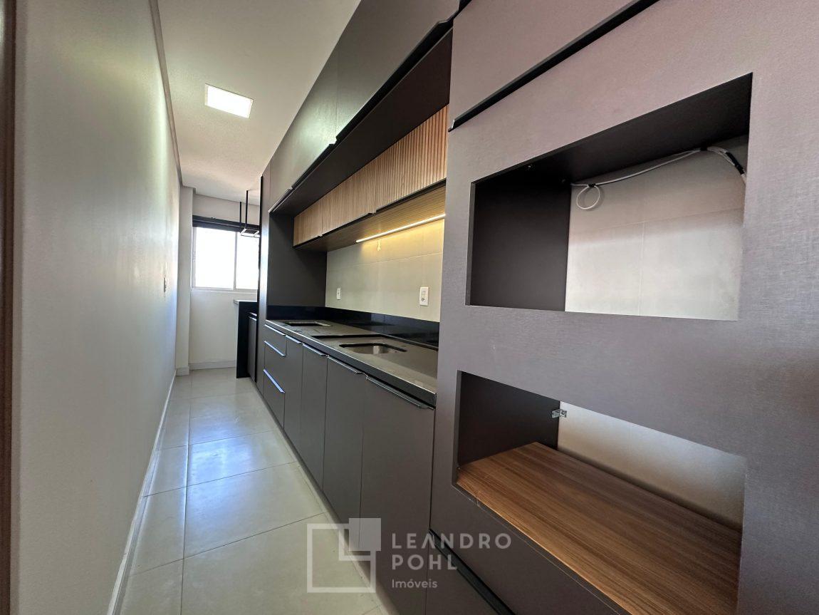 Apartamento novo, com 2 dormitórios, de fundos, semimobiliado, ambientes integrados, garagem.