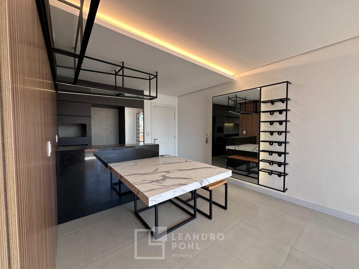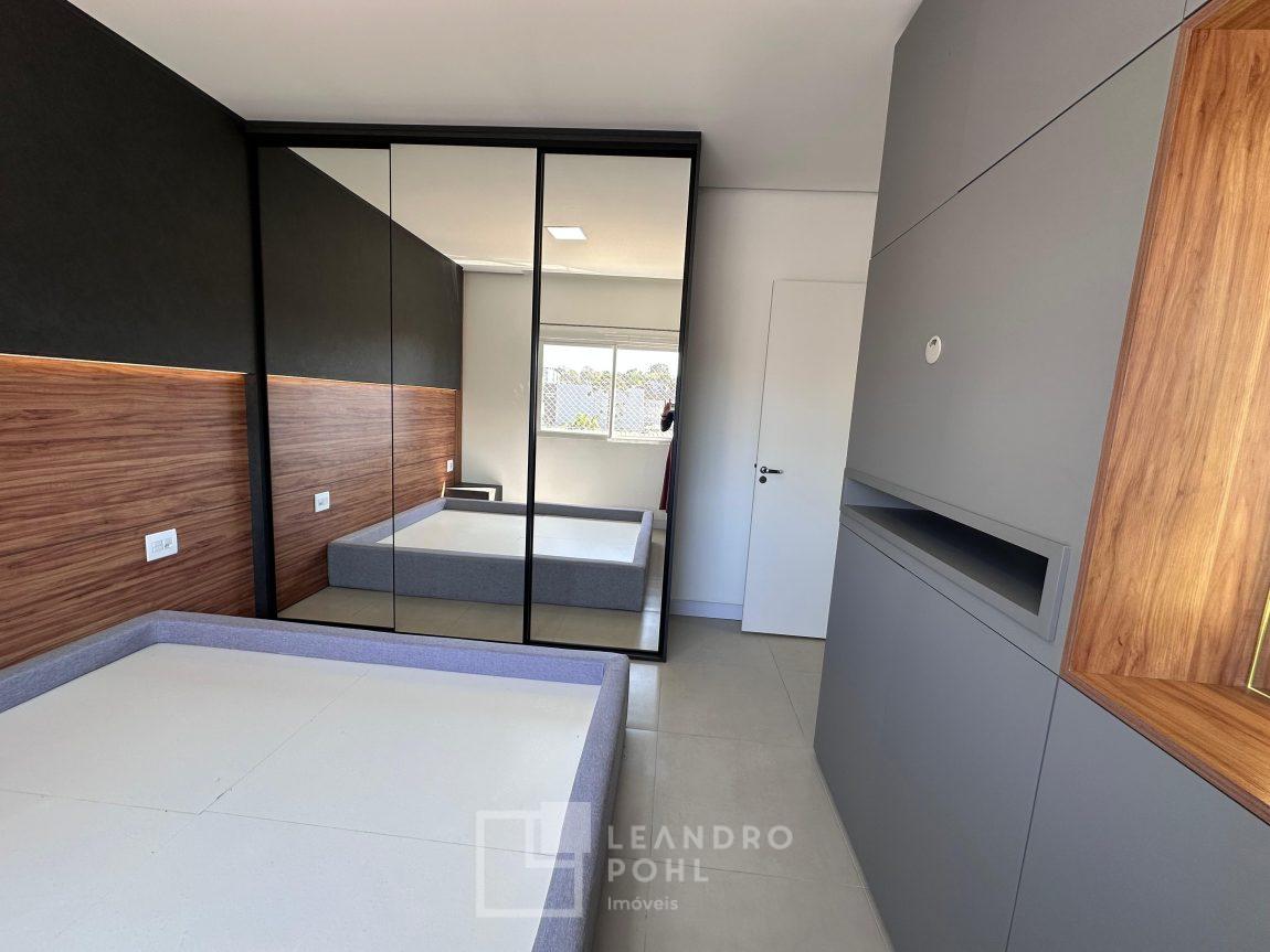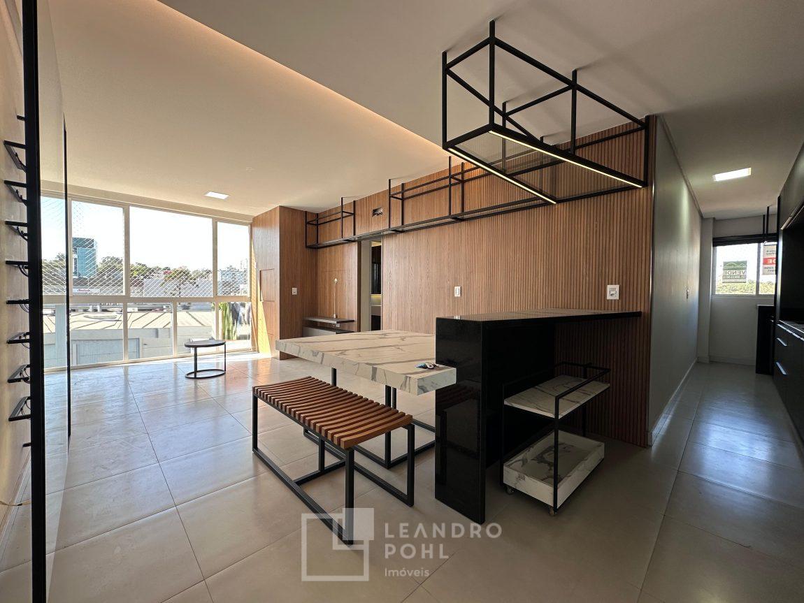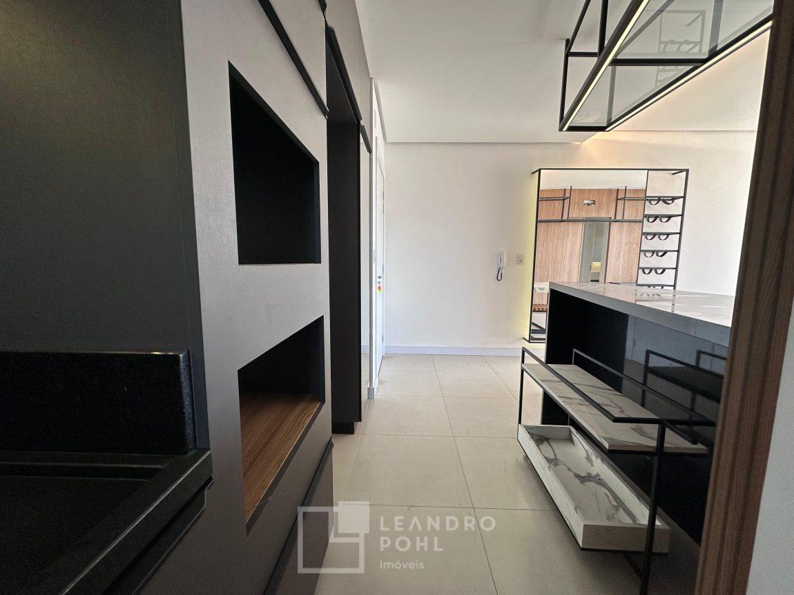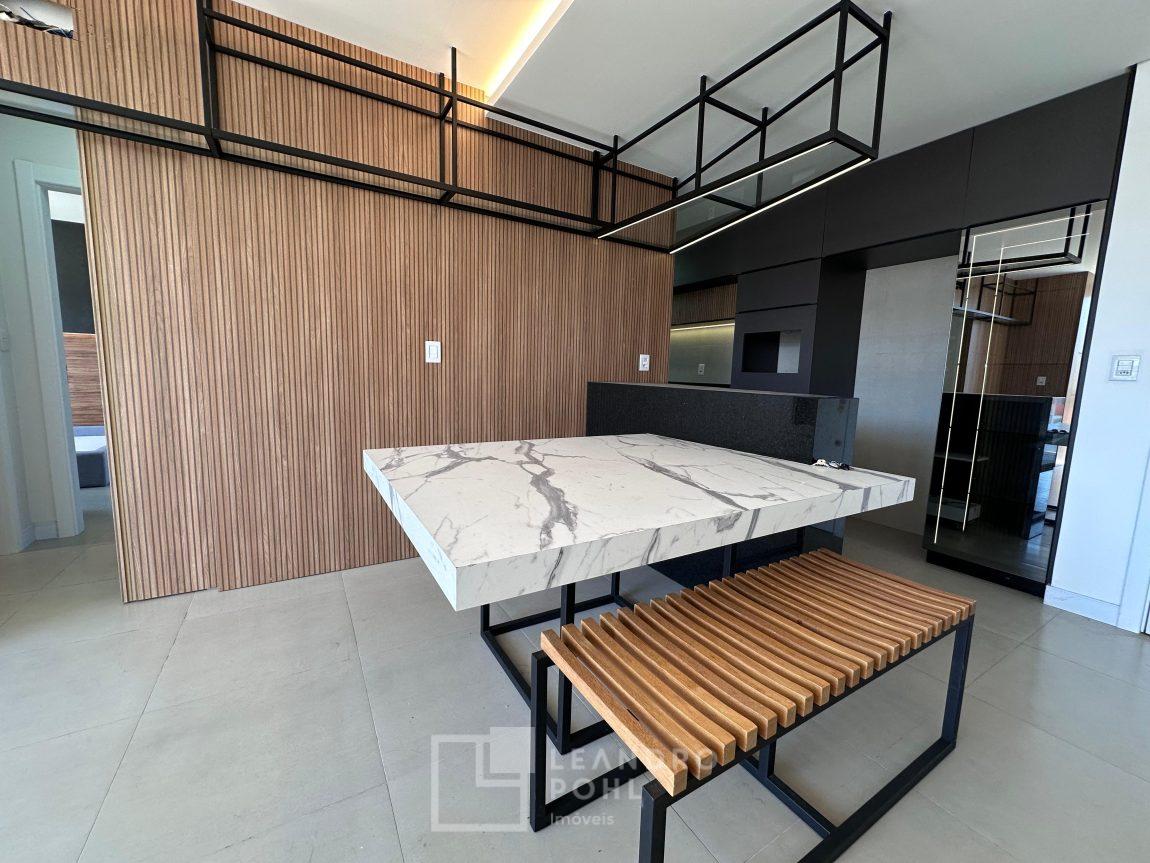 Apartamento novo, com 2 dormitórios, de fundos, semimobiliado, ambientes integrados, garagem.