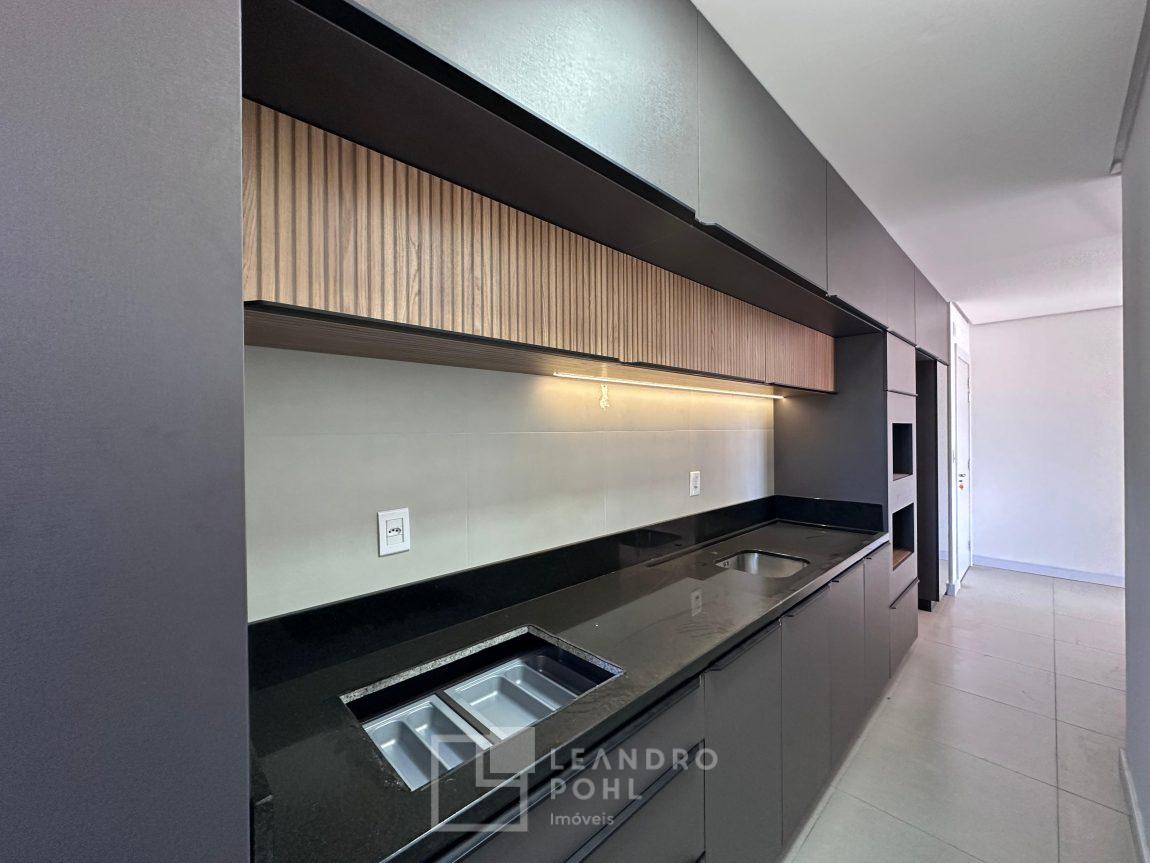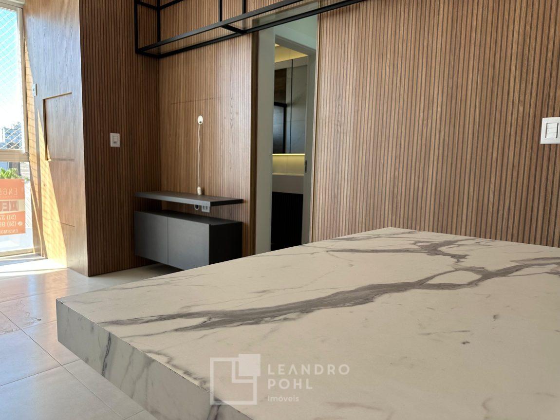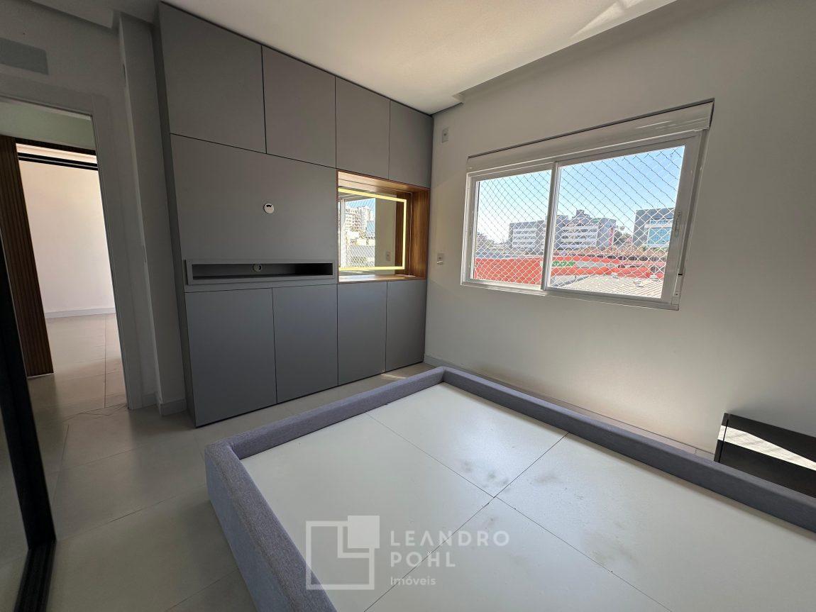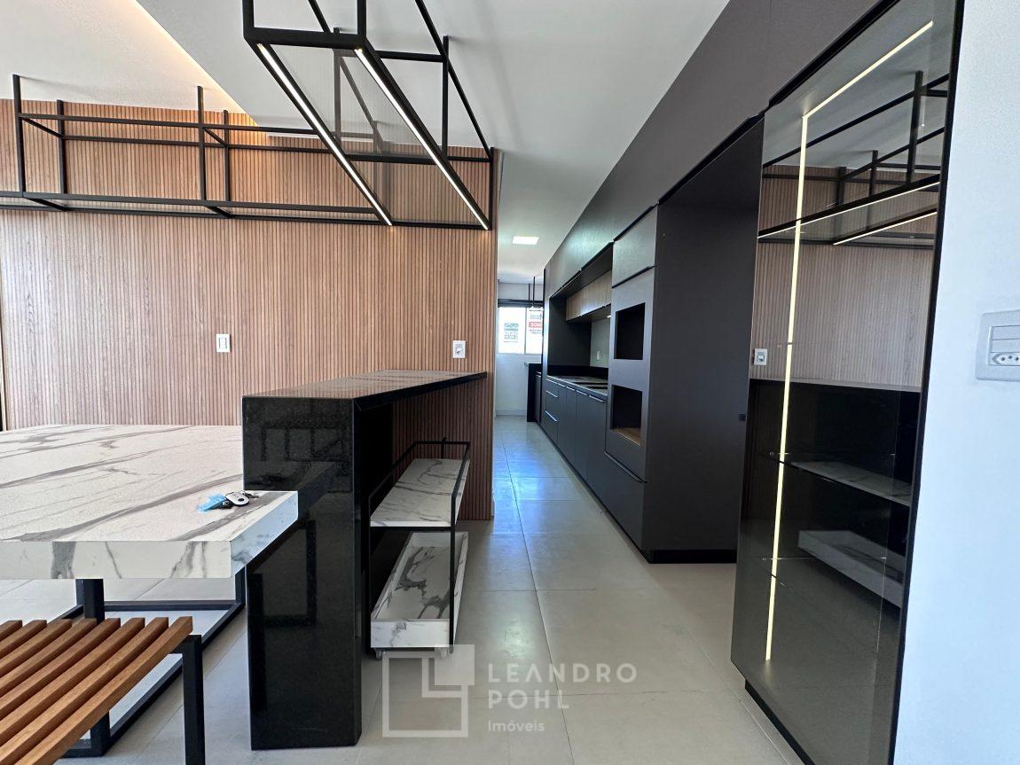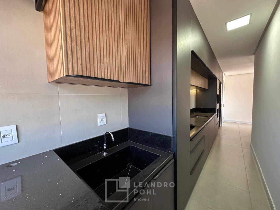 Apartamento novo, com 2 dormitórios, de fundos, semimobiliado, ambientes integrados, garagem.