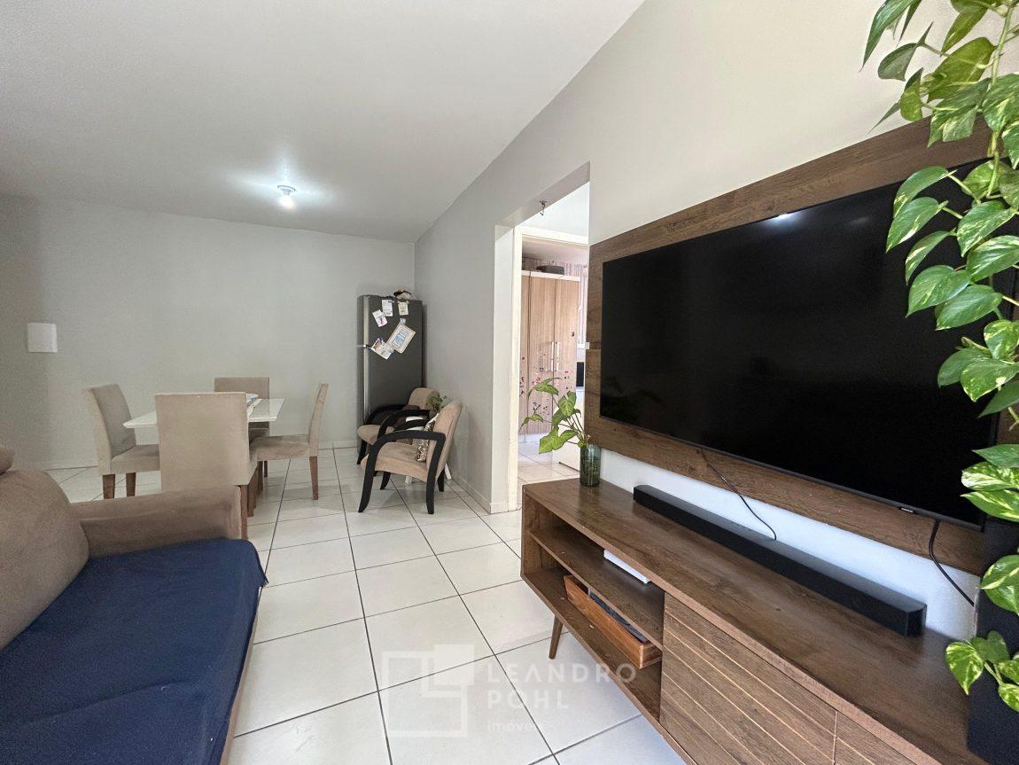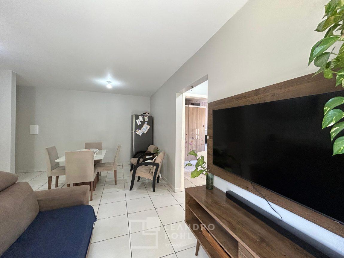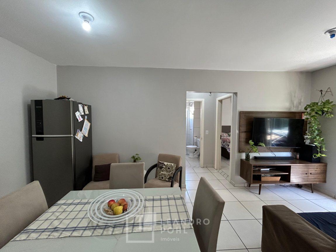 Apartamento 2 dormitórios, semimobiliado, 1 vaga de estacionamento, permanecem; mesa de 4 cadeiras, cooktop, sofá e 2 ar-condicionados,