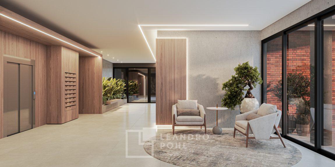 O hall de entrada conta com dois elevadores que oferecem acesso rápido e confortável às áreas compartilhadas do condomínio, garantindo praticidade e segurança para você e sua família.