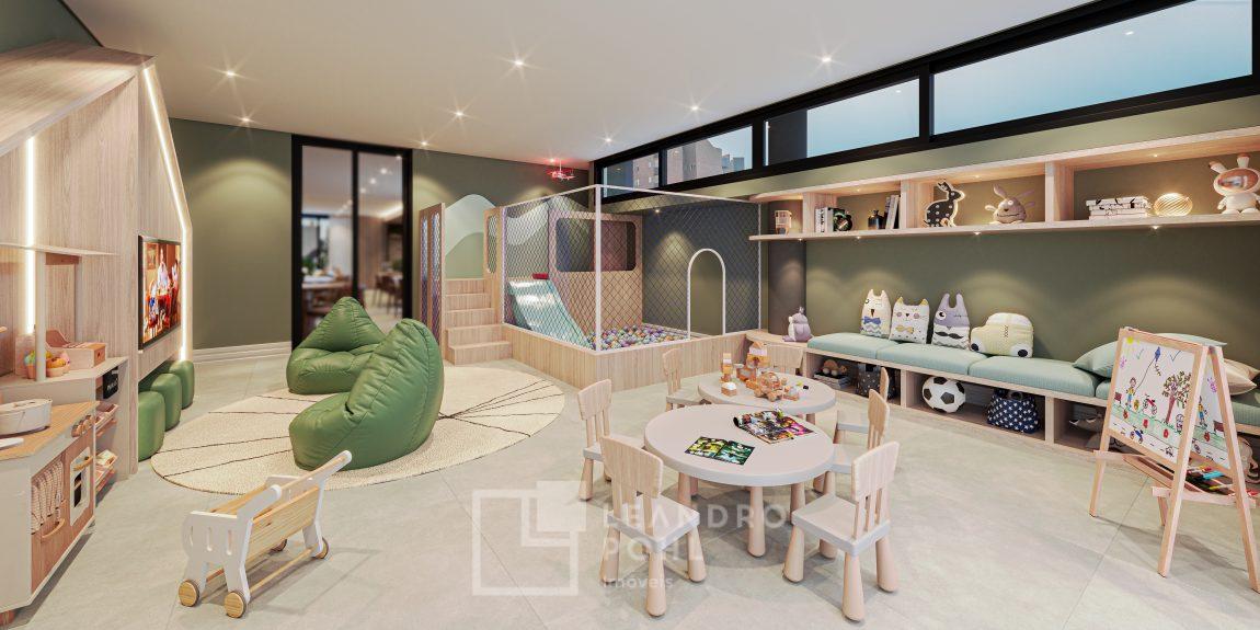 A brinquedoteca e o playground garantem a diversão das crianças com segurança, enquanto a área coberta oferece um ambiente aconchegante