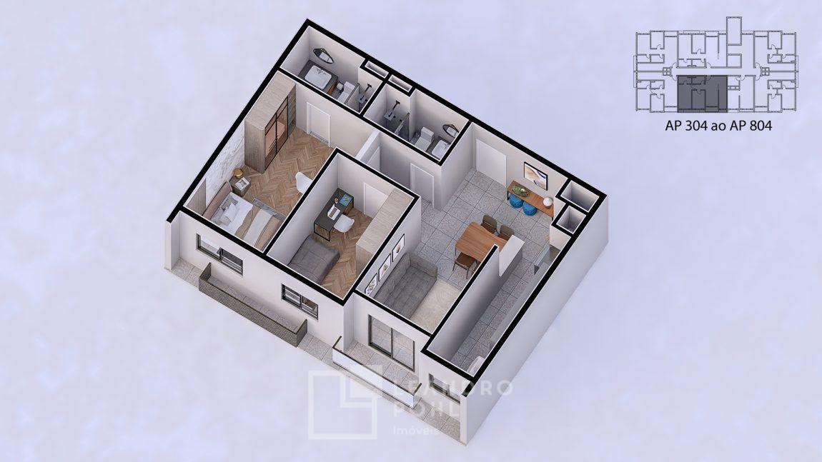 Com acabamento em porcelanato, rebaixo em gesso, massa corrida nas paredes e espera para água quente, o empreendimento oferecerá academia, salão de festas, playground e fireplace, proporcionando lazer e bem-estar aos moradores.