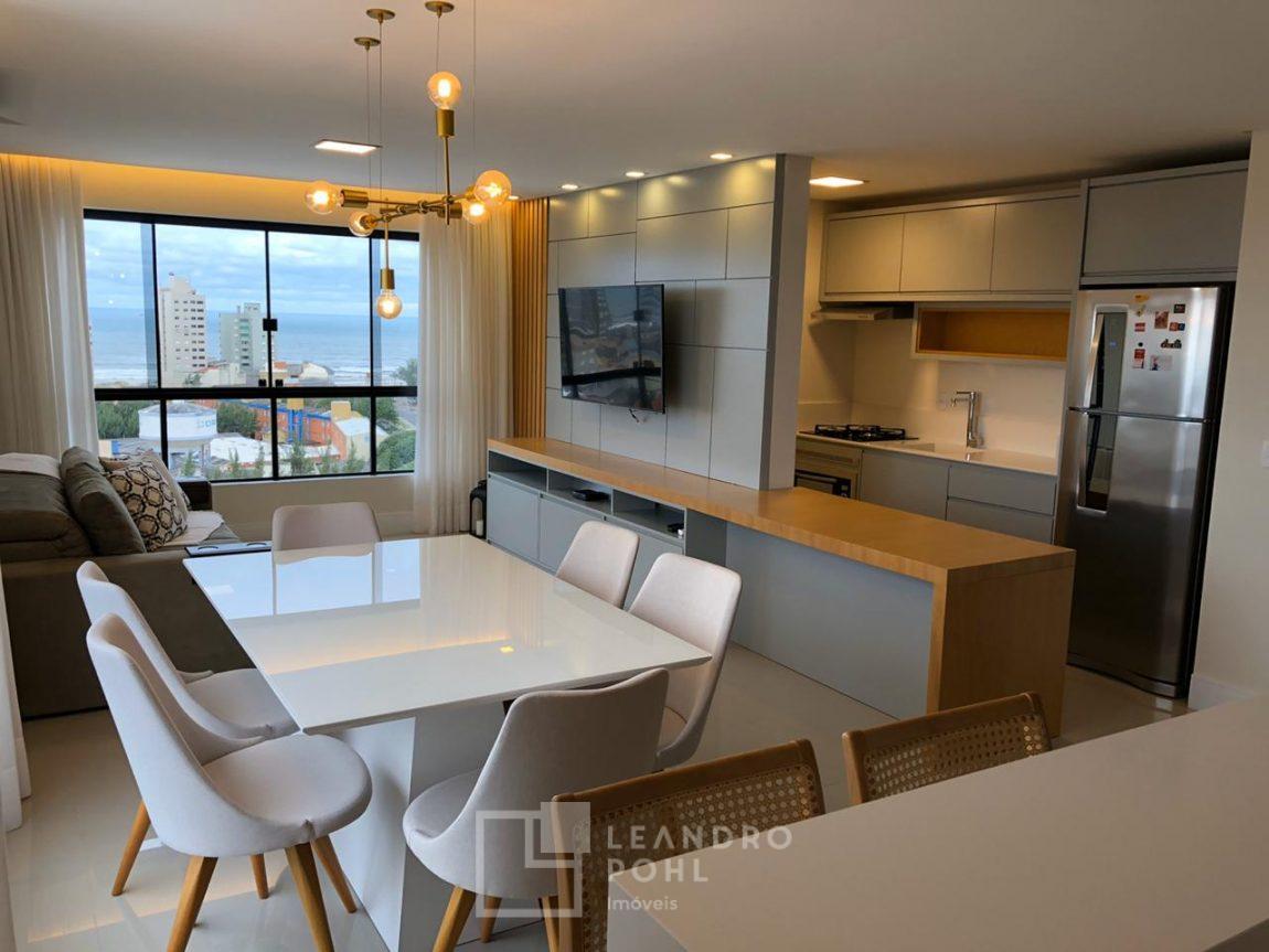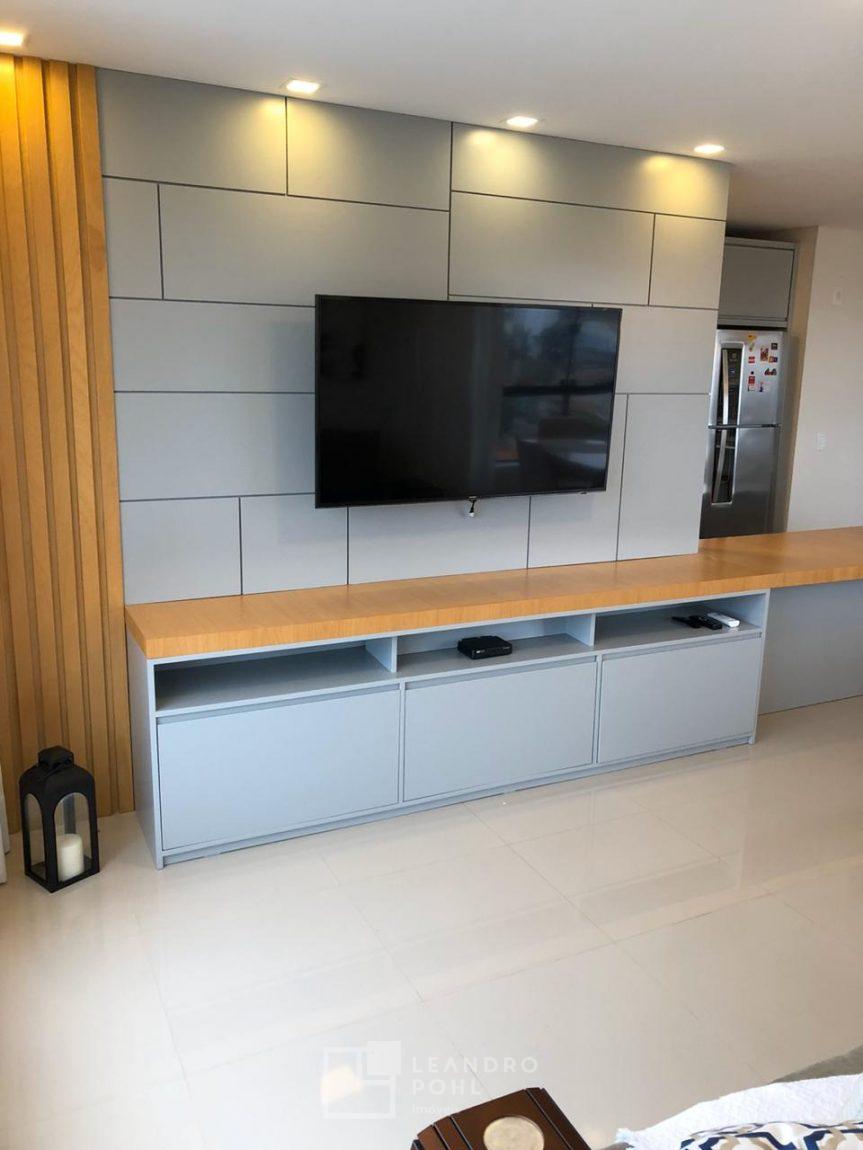 São duas suítes, lavabo, amplo living com cozinha integrada, churrasqueira, lavanderia separada. No apartamento permanecem móveis sob medida e Silestone nas bancadas da cozinha, lavabo e churrasqueira. permanecem também as cortinas, lustre, forno, fogão, depurador, junker e split do quarto, com ótima posição solar o apê pega todo o sol da manhã e tem vista para o mar e o rio.