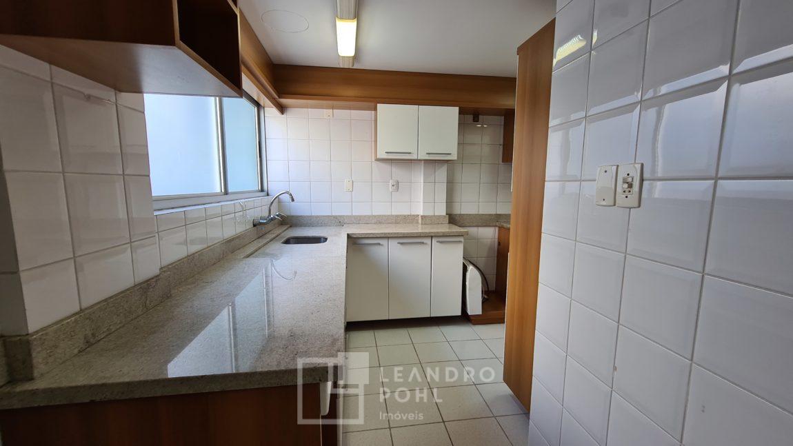 Apartame nto de frente, andar alto, cozinha, lavanderia, dois banheiros, suíte, piso laminado, permanecem moveis sob medida nos banheiros, cozinha e criados mudos do quarto, rebaixamento em gesso com sanca e iluminação embutida, sacada com churrasqueira.