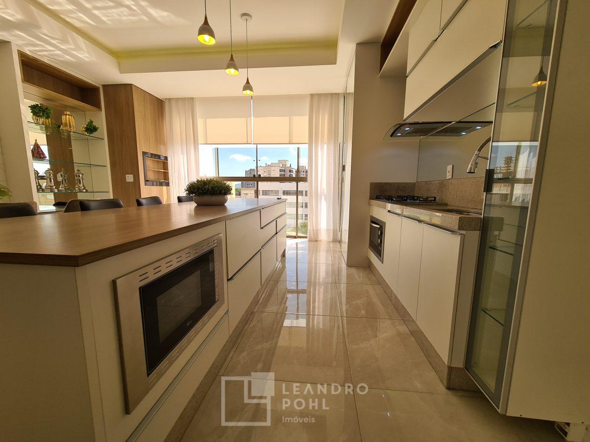 Apartamento semi-mobiliado, projetado para pessoas exigentes e de bom gosto, permanecem móveis projetados e possui 2 boxes de estacionamento.