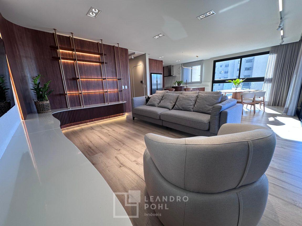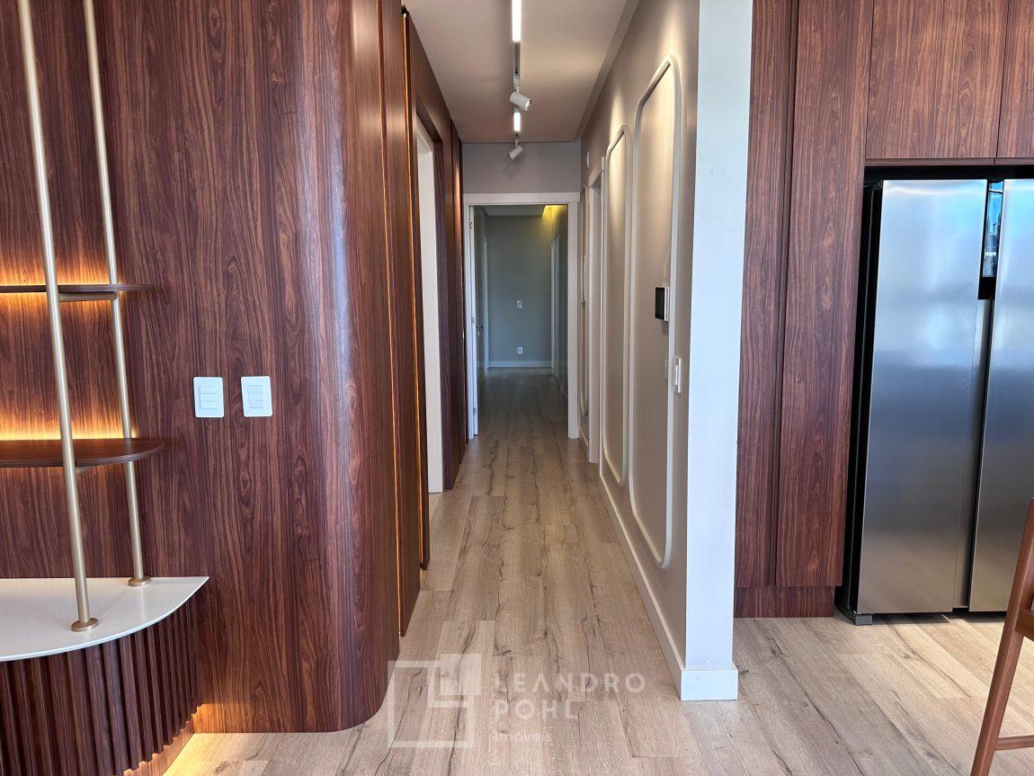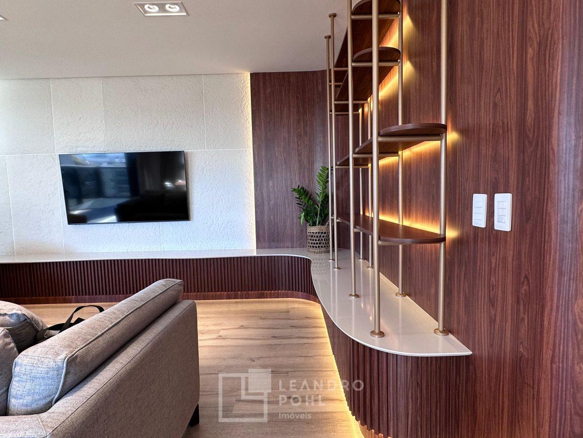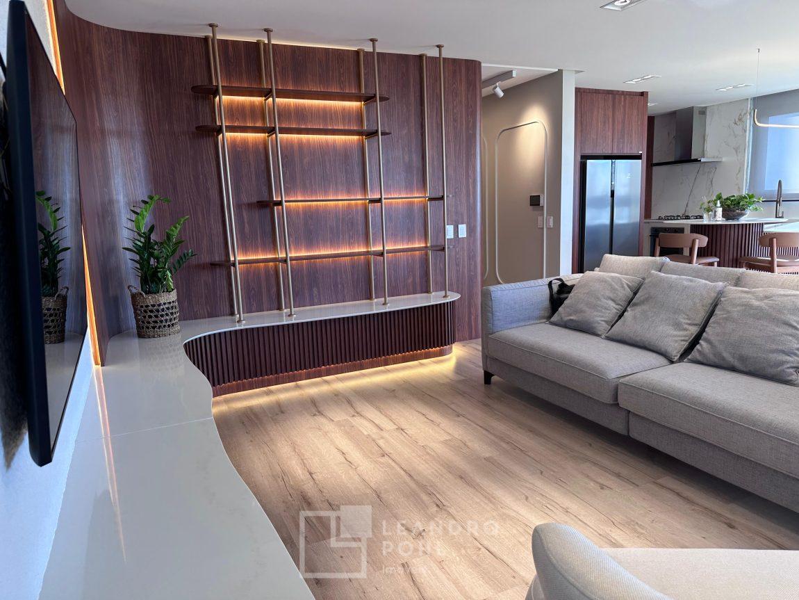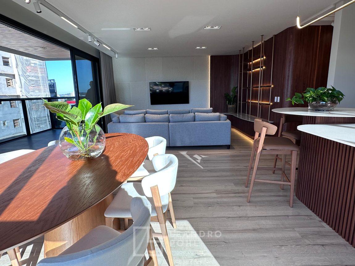 Apartamentos de alto padrão, MOBILIADO, um apartamento por andar, iluminação e eletrodomésticos, amplo living, lavabo, churrasqueira, área de serviço separada, ampla sacada com 16m², aberturas especiais em pvc com vidro duplo, localizado em área nobre do bairro, 2 elevadores, 2 box de estacionamento, , Hall de entrada mobiliado e decorado.