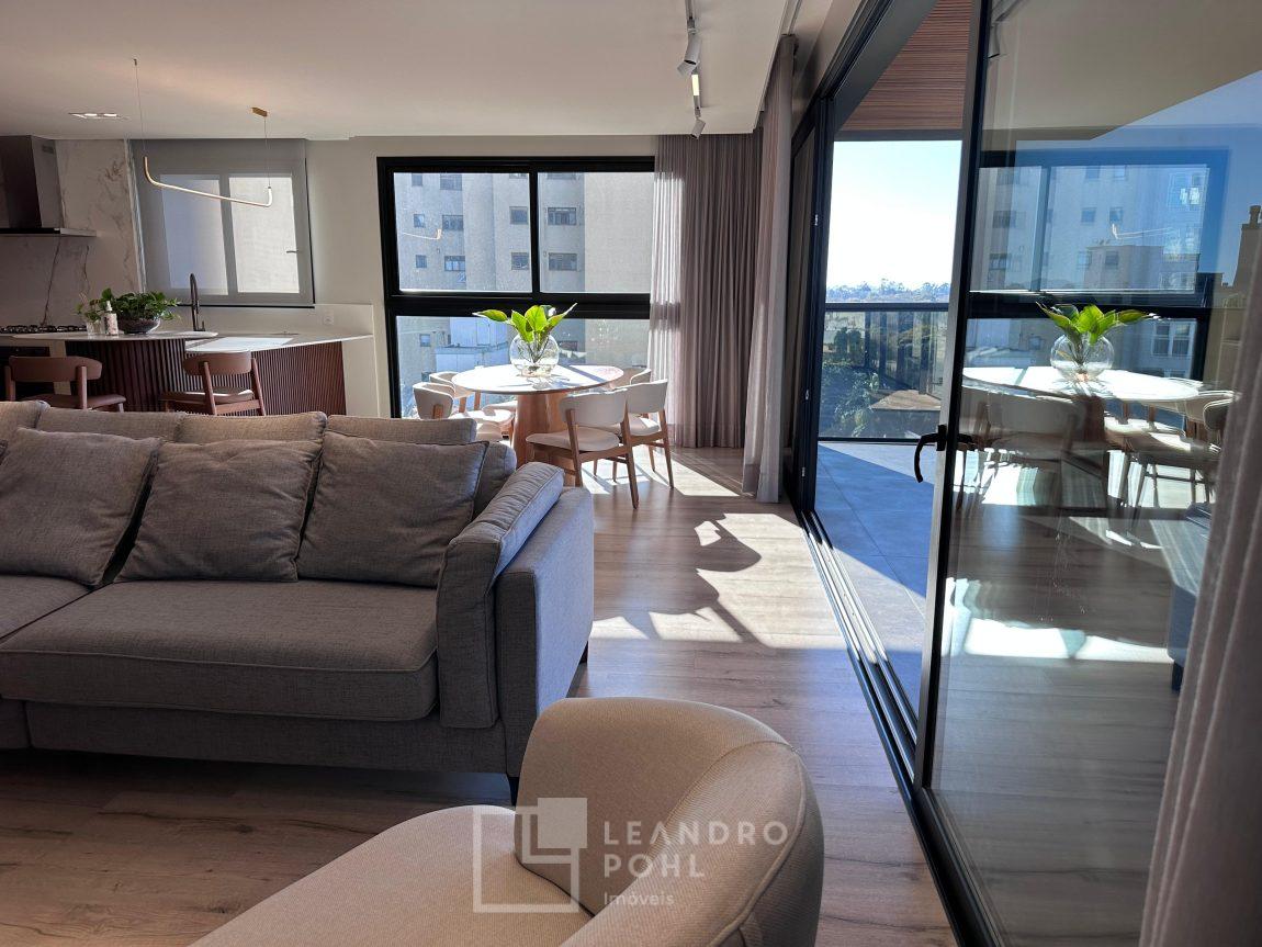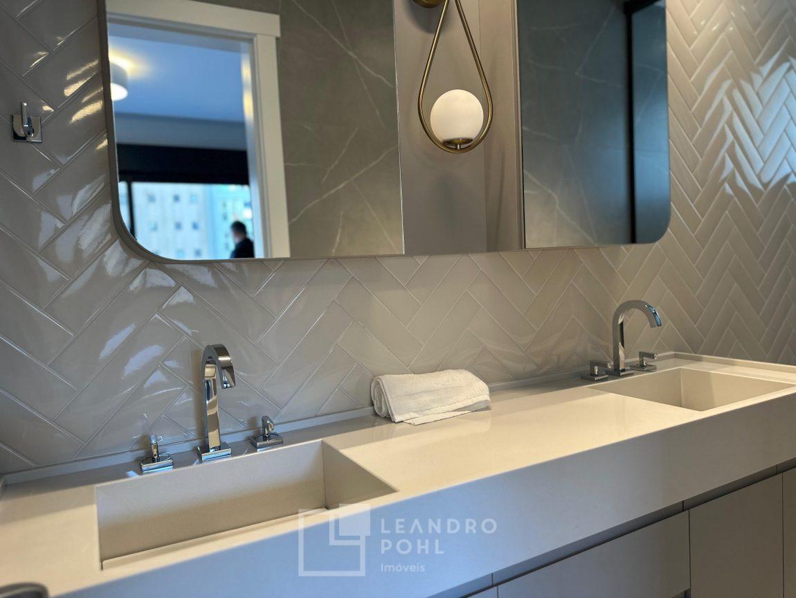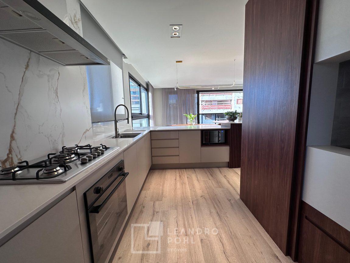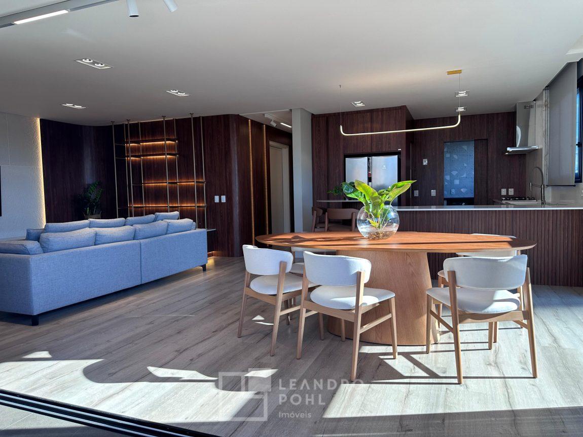 Apartamentos de alto padrão, MOBILIADO, um apartamento por andar, iluminação e eletrodomésticos, amplo living, lavabo, churrasqueira, área de serviço separada, ampla sacada com 16m², aberturas especiais em pvc com vidro duplo, localizado em área nobre do bairro, 2 elevadores, 2 box de estacionamento, , Hall de entrada mobiliado e decorado.