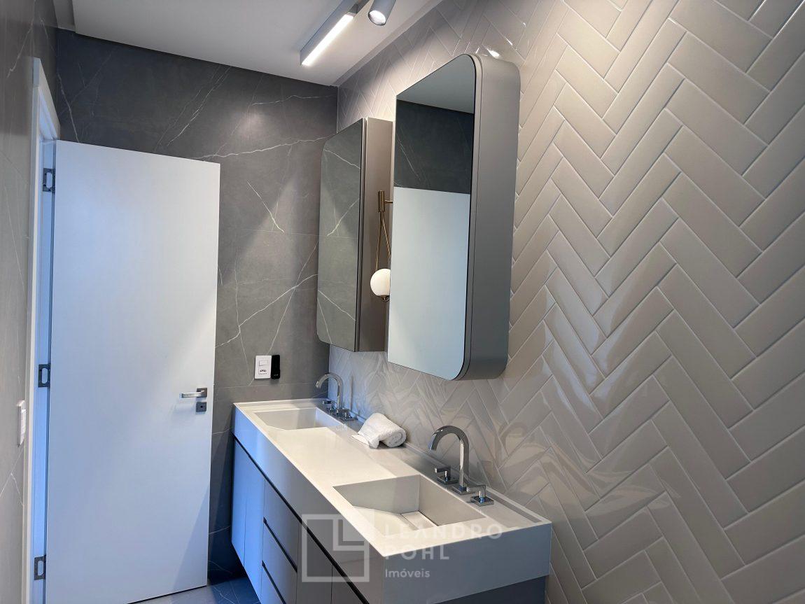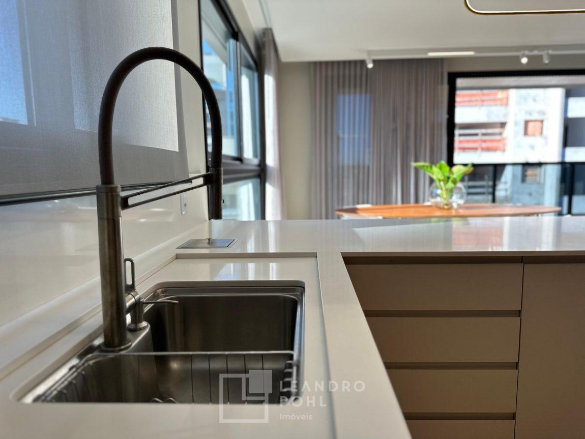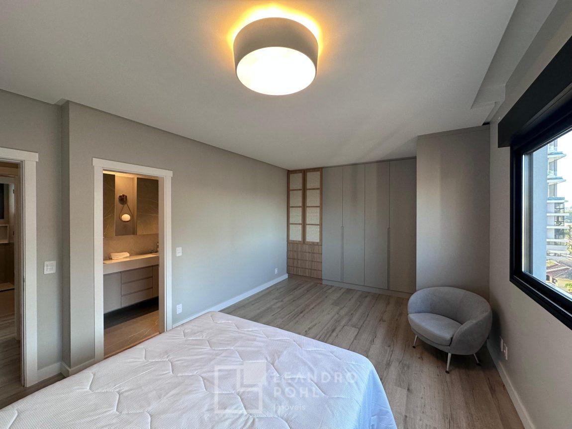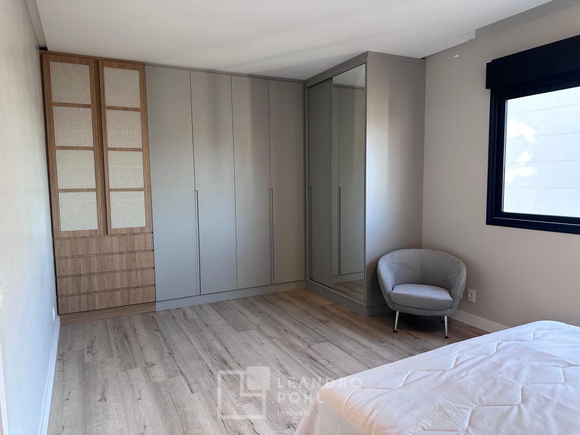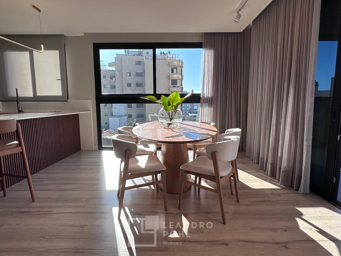 Apartamentos de alto padrão, MOBILIADO, um apartamento por andar, iluminação e eletrodomésticos, amplo living, lavabo, churrasqueira, área de serviço separada, ampla sacada com 16m², aberturas especiais em pvc com vidro duplo, localizado em área nobre do bairro, 2 elevadores, 2 box de estacionamento, , Hall de entrada mobiliado e decorado.