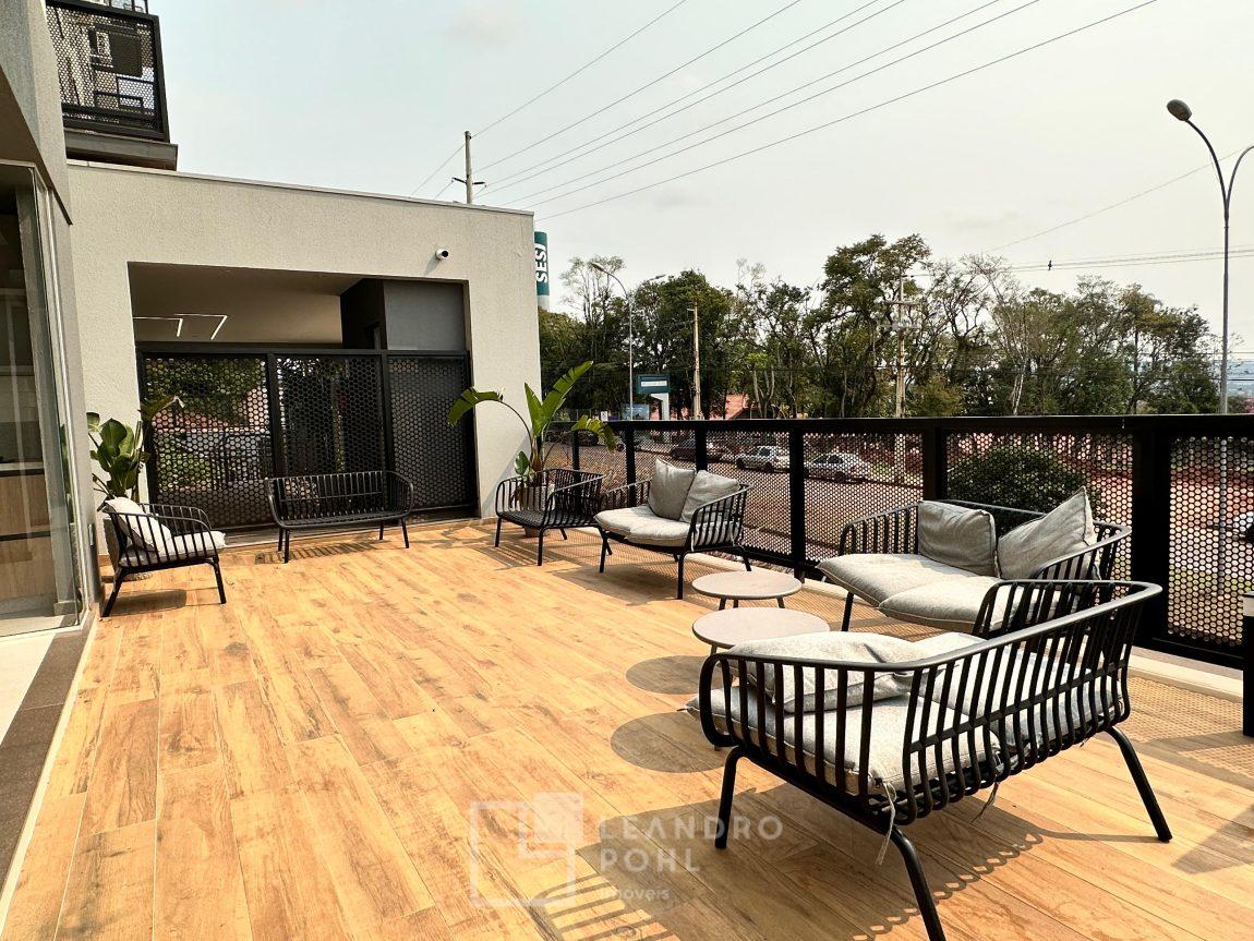 Apartamento 3 dormitórios sendo uma suíte, MOBILIADO, piso laminado na área privativa, espera para ar condicionado, fundos 7° andar, sacada, churrasqueira, agua quente.