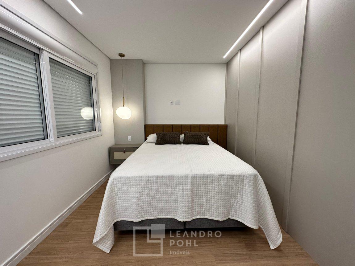 Apartamento mobiliado e decorado, possui iluminação e eletrodomésticos, lareira ecológica, com 3 dormitórios, closet, suíte, lavabo, de frente, área de serviço separada, amplo terraço de 92m², duas garagens no centro da cidade,