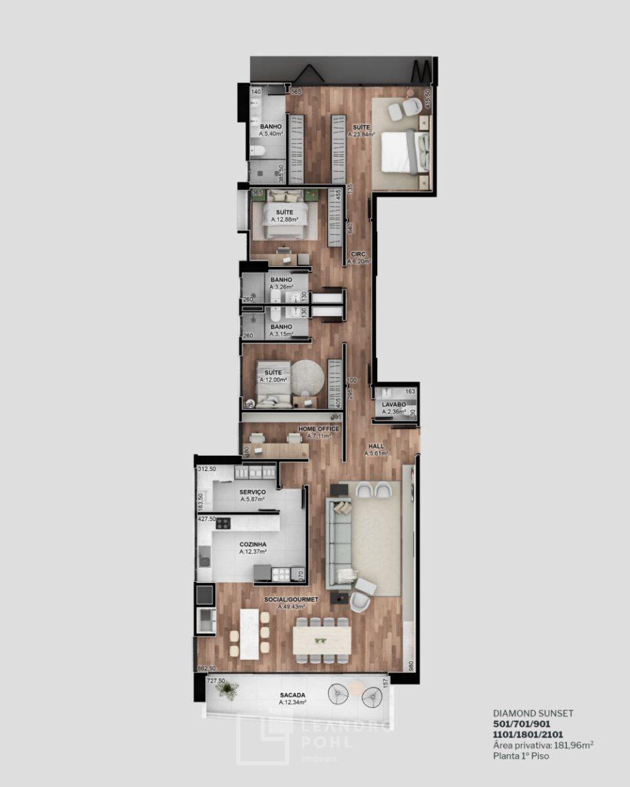 - Empreendimento com 24 pavimentos, sendo 2 apartamentos por andar